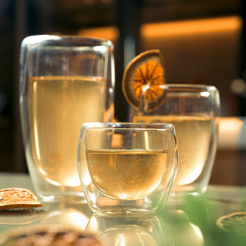 Copo de vidro borossilicato dupla camada. O vidro borossilicato proporciona durabilidade e resistencia ao calor do microondas. E mantem a temperatura do liquido, seja fria ou quente, por mais tempo. Os copos e canecas de vidro borossilicato nao alteram o sabor e nem aroma das bebidas, perfeito para cappucinos, cafe, drinks e sucos. Contem: 1 Copo de Vidro Capacidade: 150 ml Medidas: 7 x 7,5 cm Material: Vidro Borossilicato