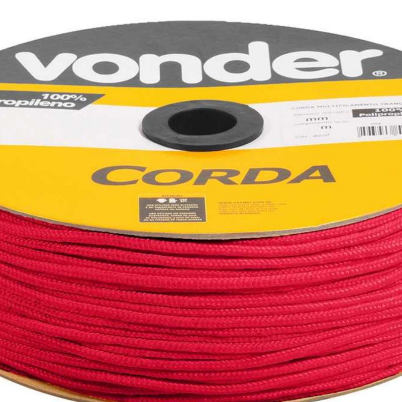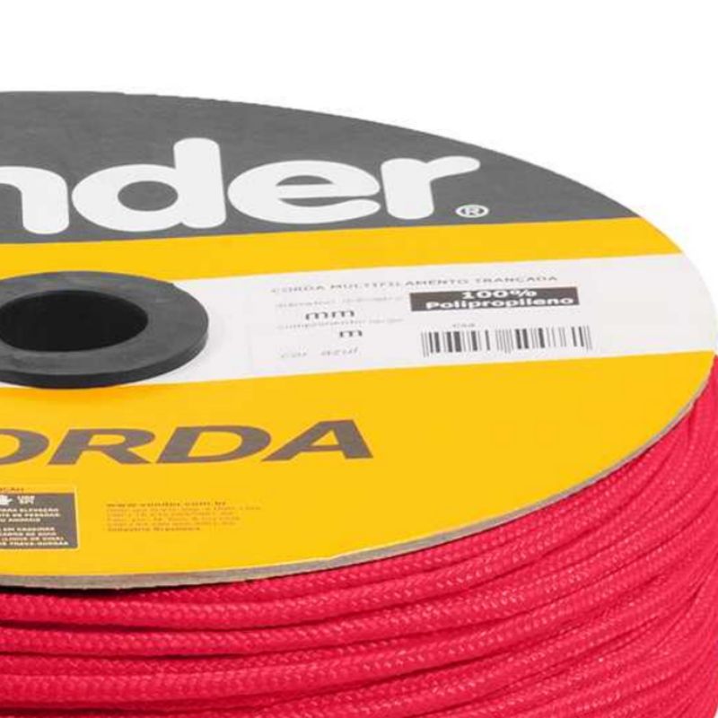 Conteúdo da embalagem1 Carretel com 625 metrosAplicações e dicas de usoIdeal para amarração de cargas, fardos, confecção de barrigueiras, redes de proteção esportivas, utilização em frigoríficos, cortinas de aviários e na agricultura em geral. Não utilizar em cadeiras suspensas, cabos de guia de segurança e fixação de trava quedas.Destaques e diferenciaisFabricada em polipropileno - PP, possui boa resistência à abrasão e tração. Pode ser colocada em expositores, que facilita o manuseio para vendas em metros. DETALHES TÉCNICOS Diâmetro da corda 3,0 mm Comprimento total da corda: 625,0 m Material da corda: Polipropileno - PP Cor da corda: Vermelha Tipo de filamento da corda: Multifilamento Tipo de encordamento: Trançado Peso aproximado por rolo/carretel: 2,7 kg Carga de ruptura: 126,6 kgf