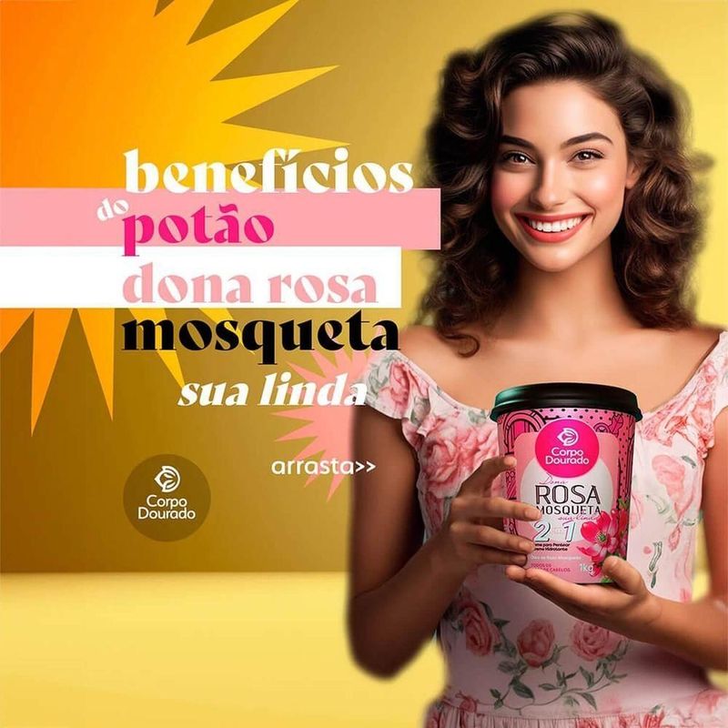 Corpo Dourado Dona Rosa Mosqueta - Creme 2 Em 1 De Pentear E Hidratação 1kgCorpo Dourado Dona Rosa Mosqueta - Creme 2 em 1 de Pentear e HidrataçãoA linha de Cremes 2 em 1 da Corpo Dourado são pensados para todos os tipos de cabelos, dos lisos às crespas, com ativos maravilhosos para seu cabelo ficar brilhante e sedoso todos os dias. Todos têm dupla função, podendo ser utilizados como 'Creme de Hidratação' ou 'Creme de Pentear'.O Dona Rosa Mosqueta sua linda promove efeito altamente hidratante fornecendo nutrição necessária para os seus cabelos, ajudando a restaurar aqueles fios ressecados e deixando-os hidratados, brilhantes com vida. Não contém parabenos.Modo de UsoCREME DE HIDRATAÇÃO: Coloque uma pequena quantidade nas mãos, aplique sobe toda a extensão dos fios, evitando a raiz.CREME DE PENTEAR: Após a lavagem, aplique o creme por toda a extensão dos fios, dê bastante atenção às pontas. Aplique mexa por mexa, massageando suavemente. Deixe agir por 10 a 20 minutos.