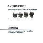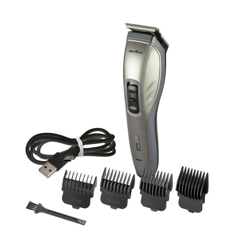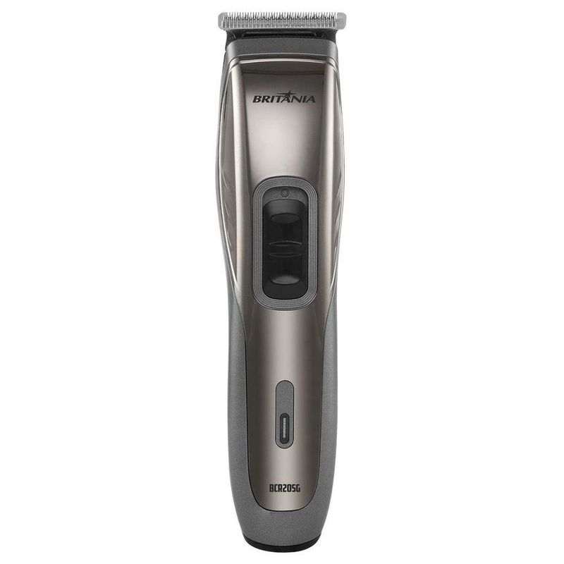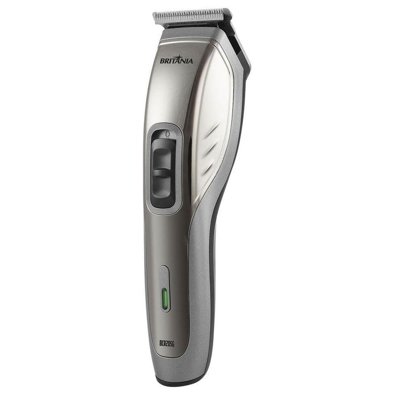 Cortador De Cabelos Britânia BCR20SG Sem Fio BivoltManter o visual sempre em dia nunca foi tão fácil! Com o Cortador de Cabelos Britânia BCR20SG sem fio. Alto desempenho de corte, para os mais variados estilos, o BCR20SG possui lâminas de alta durabilidade e resistência em aço inoxidável garantindo mais precisão no corte. E ainda conta com 5 pentes de diferentes alturas à sua escolha, de 3, 6, 9 e 12mm. E também acompanha escova para limpeza e óleo de manutenção, garantindo mais vida útil ao produto. Corte com maior conforto, pois ele pode ser utilizado com ou sem o fio, mobilidade de qualquer maneira, o cabo é de 1,80m para garantir movimento. A autonomia da bateria de Li-íon é de 45 – 60 minutos em alto desempenho. Muito mais que cortador de cabelos, é perfeição pra você arrasar!Principais Características- Bivolt automático;- Lâminas de aço inoxidável;- Funcionamento sem fio;- Resistente a água, sua cabeça pode ser lavada na torneira;- Tempo de carregamento de 2 horas;- Autonomia de 45-60min;- Acompanha escova para limpeza e óleo de manutenção;- Acompanha pentes de altura de corte: 3, 6, 9 e 12mm;- Cordão do adaptador de 1,80m;- Luz indicadora de funcionamento na cor verde;- Bateria de Li-ion;- Metal e plástico;- Garantia de 1 ano;Observação: Somente faturamos para o nosso consumidor final, ou seja, não faturamos pedidos para CNPJ por este portal de vendas.Especificações TécnicasMarca: BritâniaModelo: BCR20SGCor: CinzaPotência: 3 WConsumo: ,003 (kW/h)Característica da lâmina: Aço InoxEstado: NovoAltura do produto: 18,5 cmLargura do produto: 4,5 cmComprimento do produto: 4 cmPeso do produto: 0,263 kgAltura com embalagem: 21,7 cmLargura com embalagem: 15 cmComprimento com embalagem: 5,5 cmPeso com embalagem: 0,372 kgAcessórios: Pincel para Limpeza Óleo Lubrificante Pentes de CorteGarantia: 360 Dias