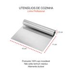 O conjunto com cortador de massas e espatula raspadora é pratico e versatil, ideal para quem busca mais agilidade e organizacao no preparo de receitas. O cortador de massas oferece cortes firmes e precisos, facilitando o processo de fechar e porcionar massas com rapidez. A espatula raspadora complementa o uso ao auxiliar no manuseio, corte, raspagem e transferencia dos ingredientes, mantendo a bancada limpa e o preparo mais eficiente. Juntos, formam uma combinacao funcional tanto para cozinhas domésticas quanto profissionais, elevando a praticidade no dia a dia. Contem: 1 Cortador de Massas Medidas: 17,5 x 3 cm Material: Aço Cromado e Polipropileno 1 Espatula Raspadora Medidas: 15 x 11 x 2,5 cm Material: Aço Inoxidavel