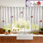 Cortina Cascata de Renda para Cozinha Premium Branca Hora do Chá Vermelho 300x100cm