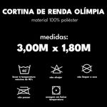 A Cortina de Renda Clássica Olímpia tem sua essência inspirada na Grécia Antiga, ela apresenta padrões geométricos sofisticados e linhas limpas que adicionam um toque de autenticidade e elegância ao seu espaço. Disponível em uma paleta de cores exclusivas, essa cortina é mais do que um simples acessório de decoração ela é uma peça que transforma sua sala ou quarto em um ambiente elegante e refinado. Renda de ótima qualidade. Composto por:1 Cortina Renda Clássica com Forro Olímpia Interlar 300x180cm Especificações:- Marca: Interlar- Coleção: Renda Olímpia- Tecido: 100% Poliéster- Acabamento: Renda- Indicada para varão: Varão Simples de até 2,00m- Tipo de abertura: Central (possuí 2 partes)- Tamanho: Largura 3,00 m - Altura 1,80 m- Indicação: Quarto, sala, copa- Permite luminosidade ao ambiente: Sim- Possui Forro: Sim- Forro e renda são costurados juntos na parte do passante, usando somente um varão para instalação. Suportes e Varão não acompanham o Produto Qual a medida ideal de cortina para a sua janela:A medida certa para sua cortina precisa ser no mínimo 30cm maior que a janela na largura e 45cm maior na altura. O varão deve ser fixado a 15cm da parte superior da janela, o suporte do varão ficará preso à parede na distância de 15cm das laterais da janela e as ponteiras a 5cm de cada suporte. Vantagens do Produto:- Cortina com passante;- Barra decorativa;- Fácil de Lavar;- Decora o ambiente;- Resistência e durabilidade;- Ótimo caimento e acabamento.