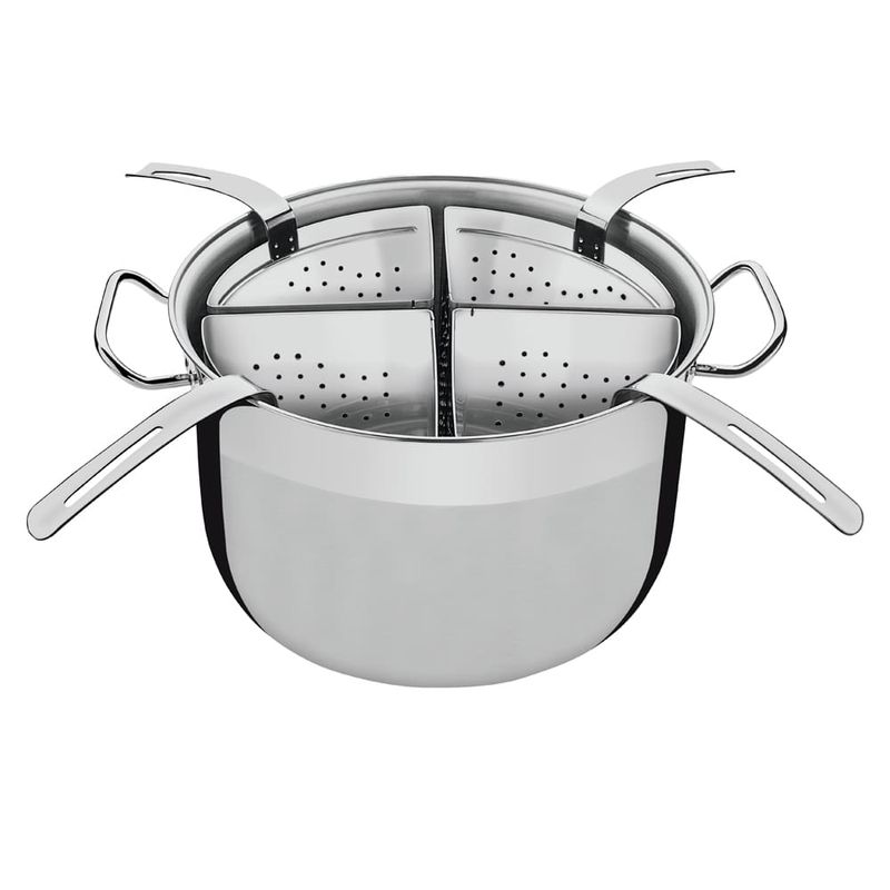 A Tramontina leva o melhor para sua casa! Com o incrível conjunto Cozi-pasta da Tramontina Prodessional, ficou bem mais pratico preparar as suas receitas de massas. Feito em aço inox que proporciona maior durabilidade sem deixar resíduos, com quatro recipientes que proporciona o cozimento de tipos diferentes de massas de uma única vez.. Com cantos arredondados que permite uma limpeza mais eficiente, design moderno, arrojado e acabamento liso. É o utensílio perfeito para a sua cozinha.