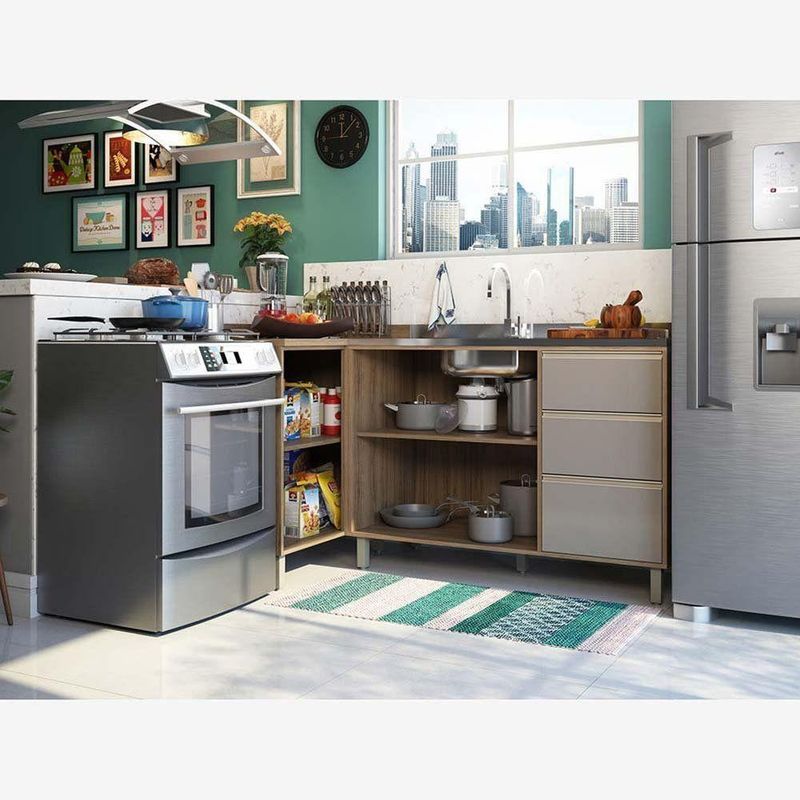 Cozinha De Canto Pequena 2 Peças Com Aéreo Balcão Canto E Balcão Para Pia Mel Luciane Móveis Vanilla Com GraffUma cozinha compacta, com 2 módulos práticos e funcionais. As portas embutidas remetem ao planejado, com acabamento impecável. Os módulos são montados individualmente e permite a instalação da forma que melhor se adeque ao seu espaço, lado direito ou esquerdo. O Balcão de Canto Reto pode ser montado do lado direito ou esquerdo, contém 1 prateleira e tampo. Balcão para pia com 2 portas e 3 gavetas com corrediças telescópicas, não acompanha tampo. Para este ambiente utilizamos como proposta de parede: Lado Balcão de Pia 173cm X 95cm. Características da Cozinha Mel: Corpo/Caixaria: MDP Vanilla UV Touch Frontais: MDP Graff UV Brilho ou Laca Branco Corrediças Telescópicas: Abertura total das gavetas Dobradiças: Metálicas Ø26mm Puxadores: Alumínio Gola - Inox Pés: P S com regulagem de altura na cor Champagne Cozinha Composta por: 1 Balcão de Pia 120cm 2 Portas 3 Gavetas (sem tampo) 1 Balcão de Canto Reto com tampo Dimensões do Balcão de Cozinha Para Pia Sem Tampo 120 cm 2 Portas de abrir 3 Gavetas Altura: 87 cm Largura: 120 cm Profundidade: 51,5 cm Peso: 50,7 kg Dimensões do Balcão de Cozinha com Tampo Canto Reto 80 cm 1 Porta de abrir 1 Prateleira Altura: 89,5 cm Largura: 80 cm Profundidade: 53 cm Peso: 33 kg Garantia de 3 meses contra defeito de fabricação. Informações complementares: Fique de olho: siga sempre as orientações do fabricante e utilize seu produto de acordo com o manual. A empresa não se responsabiliza pelo mau uso do produto, o que pode causar perda da garantia.#8239; Certifique se que seus dados estejam atualizados, como endereço e um telefone válido. A entrega será realizada no térreo, sendo assim em prédios o deslocamento da mercadoria, subir escadas, elevadores ou transporte por guincho para apartamentos fica sob responsabilidade do comprador. Todas as nossas entregas são realizadas em horário comercial, não sendo possível fazer agendamento, sugerimos acompanhar o rastreio do pedido e ter alguém para receber no endereço indicado. Não nos encarregamos por montagens, desmontagens e outras instalações, serão de responsabilidade do comprador.