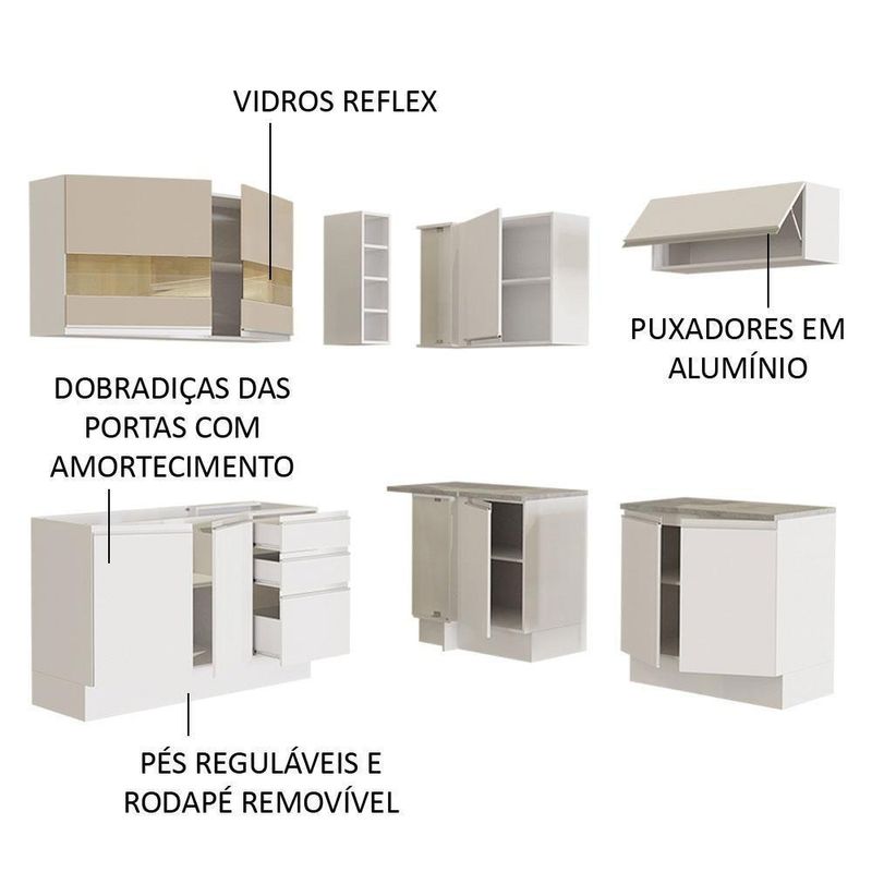 Cozinha Completa Madesa Lux 340001 Com Armário E Balcão - Branco/branco Veludo Branco/branco VeludoA linha de cozinhas Lux da Madesa é uma das mais sofisticadas do mercado. Além do ótimo espaço interno e externo, possui design moderno e a elegância que a sua casa merece.A cozinha é totalmente modulada e possui profundidade de cozinha planejada: 60 cm. A fabricação é feita com itens de qualidade superior, que conferem durabilidade e maior vida útil ao móvel.As gavetas possuem corrediças telescópicas e todas as portas contém amortecedor para o fechamento suave. Além disso, os puxadores são em alumínio, mais resistentes ao diário.Um outro grande diferencial desta versão são as portas e frentes das gavetas, que possuem revestimento metálico nas bordas e acabamento em Branco Veludo, uma pintura especial e sofisticada, com toque liso e aveludado.Para completar, o balcão comporta pias de inox ou pedra, no tamanho de 120 cm x 60 cm e a torre quente permite a instalação de forno embutido.O acabamento da estrutura é branco e as portas e frentes das gavetas são em Branco Veludo. É feito em Pintura Poliéster, que consiste na aplicação de 7 camadas que protegem o móvel dos efeitos do álcool da água e do calor.Medidas totais da cozinha:- 240 cm de largura- 225 cm de altura- 60 cm de profundidade nos módulos inferiores e 31 cm nos aéreosItens incls:- Uma (1) Torre Quente de 60 cm com três (3) gavetas e uma (1) porta- Dois (2) Aéreos de 80 cm com uma (1) porta basculante- Um (1) Aéreo de 120 cm com duas (2) portas- Um (1) Balcão de Pia de 120 cm com duas (2) portas (Não acompanha tampo.)Código do produto: GRLX320001H7Obs.:- Imagens meramente ilustrativas, os eletros, o tampo da pia, a torneira e a decoração não acompanham o produto- - O produto segue com manual de instalação e todas as ferragens necessárias para sua montagem- Por , a torre quente precisa ser fixada na parede1 – O produto é ou ?R.: s.2 – O produto vem montado? Se não, vocês realizam a montagem?R.: . Todos os produtos seguem com manual de instalação e as ferragens necessárias. .3 –br>R.: .4 – R.: 5 – R.:.6 – O produto acompanha ?R.: Sim, todos os produtos são entregues com suas respectivas .7 – Os produtos possuem garantia?R.: Sim. Cor: Branco | Garantia: 3 meses contra de fabricação | Dimensões - Altura: 225 cm | Dimensões - Largura: 340 cm | Dimensões - Profundidade: 60 cm | Produto: Cozinha | Marca: Madesa | Peso aproximado: 162 kg | Material: MDP | RBN: Casa/Móveis/Móveis de Cozinha/Móveis de Cozinha Completa | Estado de Origem: RS | Material para Filtro: MDP | Instruções/Cuidados: Utilize um pano limpo, levemente umedecido e seque em seguida a superfície. Não produtos químicos ou abrasivos para a limpeza. Recomendamos polir seu móvel com lustra-móveis duas a três vezes por ano. | Comprimento Produto Com Embalagem (cm): | Largura Produto Com Embalagem (cm): | Altura do Produto com Embalagem (cm): | Peso Produto Com Embalagem (Kg): 162 | Nome do Simples no Fornecedor: Cozinha Completa Madesa Lux 340001 com Armário e Balcão - Branco/Branco Veludo | Produto precisa de Montagem?: Sim, sugerimos a contratação do de montagem (para os CEPs em que o está disponível) ou de algum experiente de sua preferência | Conteúdo da embalagem: 1 Cozinha Completa | Descrição do Tamanho: 225 cm x 340 cm x 60 cm | | Fabricante: Madesa Cor: Branco/Branco Veludo