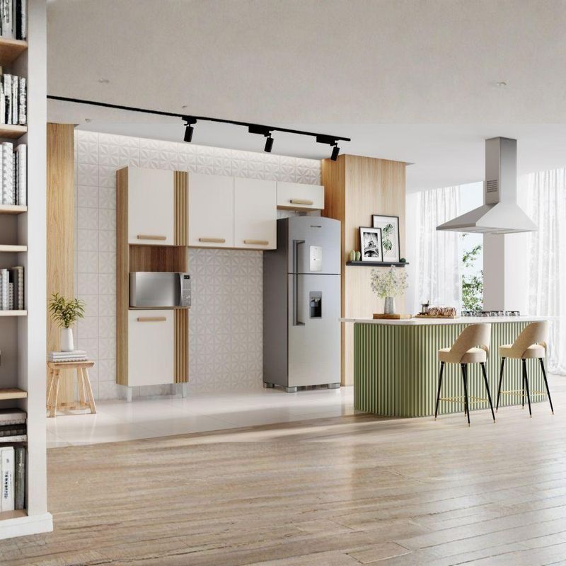 Cozinha Compacta 5 Portas Juma 210 Cm Atacama Off White Armoveis Atacama Off WhiteCozinha Compacta Juma, moderno, prático e perfeito para compor a sua cozinha. Conta com estrutura em MDP 12/15mm e acabamento em verniz texturizado. Possui portas com dobradiças metálicas, gavetas com corrediça metálica e prateleiras internas (suportando até 5kg cada). Conta ainda com puxadores em MDF e pés de plástico. Produto será entregue em 02 volumes.DimensõesAltura: 200 cmLargura: 210 cmProfundidade: 36 cmEspecificações Técnicas:Modelo: JumaMateriais: MDPEstilo: ModernoAmbiente: CozinhaPeso máximo suportado: 28kg distribuídos.Sistema de montagemCavilhas, parafusos e pregos / Manual de montagem inclusoMontagem, desmontagem e outras instalações serão de responsabilidade do cliente!Recomendação de LimpezaPara a limpeza, utilize um pano seco para retirada do pó.Evite utilizar produtos abrasivos e o contato direto com a umidade.Modernidade e praticidade ideal para sua rotina, adquira já o seu!Importante SaberAs imagens são meramente ilustrativas, não acompanham objetos de decoração e eletrônicos.A tonalidade da cor do produto pode variar de acordo a calibração de cores do seu monitor, a iluminação do ambiente ou sua percepção visual.O cliente deve verificar a quantidade de VOLUMES descritos na nota, a situação da embalagem, caso haja algum dano NÃO ASSINE o comprovante de recebimento e RECUSE a mercadoria.Não nos responsabilizamos por subir escadas/elevadores ou pelo transporte por guincho em apartamentos. Eventuais despesas são de responsabilidade do comprador.Confira as dimensões do produto e certifique-se de que passarão normalmente por supostos elevadores, portas, escadas ou corredores de sua residência. Recomendamos que o responsável pelo recebimento confira se os produtos entregues correspondem ao modelo e à quantidade adquirida.Garantia De Fábrica90 dias para eventuais defeitos de fabricação. Baterias são necessárias?: Não | Principais Características do Produto 0: Estrutura em MDP | Principais Características do Produto 1: Dobradiças metálicas | Principais Características do Produto 2: Corrediça metálica | Cor: Multicolorido | Certificação de teste externa: Não | Palavras-chave de Pesquisa: Cozinha | Componentes incluídos: Kit | Exige montagem: Sim | Is Fragile: Não | Dimensões do item P x L x A: Altura: 200 cm Largura: 210 cm Profundidade: 36 cm | Peso do item: 50 kg | Fabricante: Aramoveis | Número do modelo: 2012155 | Número de caixas: 2 | Quantidade de itens: 1 | Número da peça: Não | Regulamentações de produtos perigosos: Não | Produto: Cozinha Compacta | Altura: 200 cm | Largura: 210 cm | Marca: Aramoveis | Modelo: Juma | Tipo de móveis de cozinha: Completa | Requer montagem: Sim | Peso da embalagem do vendor: 50000 g | Largura da embalagem do vendor: 68 cm | Comprimento da embalagem do vendor: 152 cm | Altura da embalagem do vendor: 16 cm | Cor: Atacama Off White