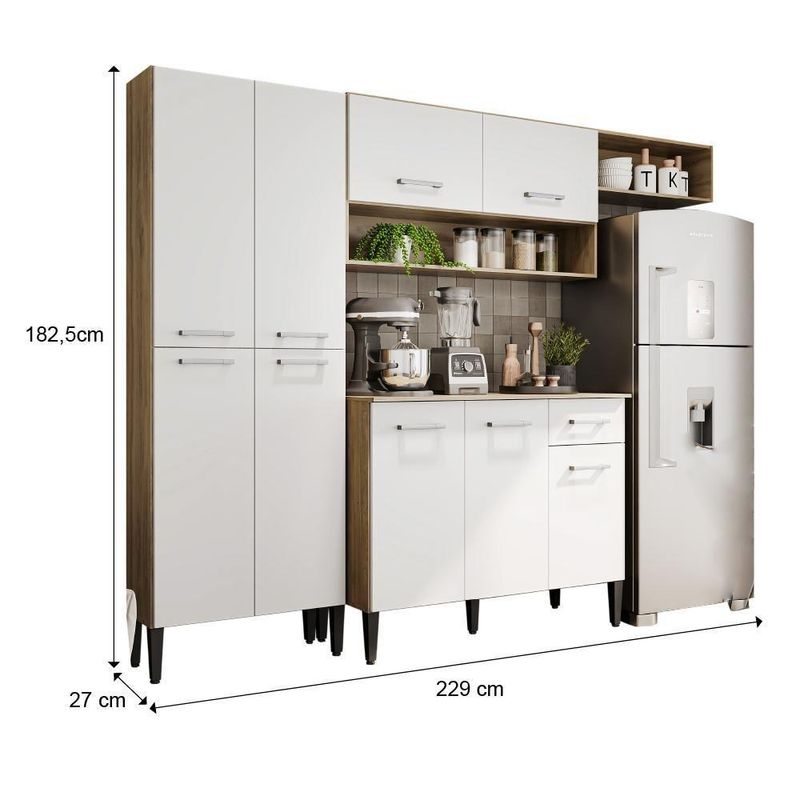 Cozinha Compacta Arizona Glam Carvalho Carraro - Carvalho/branco Carvalho/brancoA Cozinha Compacta Arizona Glam da Carraro é o item perfeito para quem está procurando funcionalidade, organização e estilo para ambientes compactos. O produto é composto por um paneileiro com 4 portas, um balcão de pia com gaveiteiro, um armário aéreo e um nicho.Especificações do Produto:Medidas totais: Largura: 229 cm | Altura: 182,5 cm | Profundidade: 27 cmMedidas do balcão: Largura: 105 cm | Altura: 84,5 cm | Profundidade: 44 cmMedidas do paneleiro: Largura: 64 cm | Altura: 182,5 cm | Profundidade: 27 cmMedidas do aéreo: Largura: 105 cm | Altura: 55 cm | Profundidade: 27 cmMedidas do Nicho: Largura: 60 cm | Altura: 22 cm | Profundidade: 27 cmPeso total: 61 KgMatéria Prima: BPAcessórios: Pés com regulagem de altura(Imagens meramente ilustrativas: os eletros e a decoração não acompanham o produto.)Garantia:Os produtos possuem garantia de 03 meses (se em condições normais), contra defeito de fabricação, ou componentes utilizados.Esta garantia não cobre defeitos por inadequado ou abusivo, falta de cuidados e desbotamento dos revestimentos. Gavetas: 1 | Estado de Origem: RS | Largura do Produto Com Embalagem: 50.3 | Profundidade: 44 cm | Instruções/Cuidados: Nenhuma Informação | Material para Filtro: Madeira | Nome do Simples no Fornecedor: Cozinha Compacta Arizona Classic Carvalho Carraro | Descrição do Tamanho: Altura: 182,5 - Largura: 229 - Profundidade: 44 | Produto precisa de Montagem?: Sim | Peso: 65.2 | Altura do Produto Com Embalagem: 21.6 | Peso do Produto Com Embalagem: 67.2 | Largura: 229 cm | Conteúdo da Embalagem: 1 Cozinha Compacta Arizona Glam Carvalho Carraro | Altura: 182,5 cm | Profundidade do Produto Com Embalagem: 170.1 | Portas: 9 | Material: MDP | Nome: Cozinha Compacta Arizona Glam Carvalho Carraro | Profundidade (cm): 44 cm | Tipo de móveis de cozinha: Armário/Balcão Cor: Carvalho/Branco