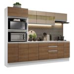 Cozinha Completa Modulada Com Balcão E Tampo Smart 250Cm MDF Madesa Branco Rustic CremaA Cozinha Completa Smart é a campeã de vendas da Madesa. Moderna, bonita e com materiais de alta qualidade. Seu maior destaque é ser em MDF, material ecologicamente correto que confere a boa resistência e durabilidade à peça.É uma cozinha planejada, pois seus módulos são separados, podendo ser montados conforme a disposição desejada. Internamente é uma cozinha bem dividida e muito espaçosa. Oferece excelente interna do espaço para que você organize toda a sua louça e armazene alimentos.Possui puxadores em alumínio, corrediças e dobradiças metálicas e rodapés encaixados com pés em PVC com regulagem de altura. Seu aéreo em vidro agrega beleza e sofisticação. Um grande diferencial é que contempla o tampo do balcão de pia que pode ser removido para a co de uma pia. Já o balcão de 60cm segue com tampo que pode ser recortado para a co do cooktop.Para completar, o acabamento é em pintura poliéster de alta resistência e fácil limpeza que confere beleza e pde. Disponível nas opções totalmente branca ou internamente branca e com as portas em crema e amadeirado Rustic com toque de madeira l. As medidas totais são: 250 cm de largura e 195 cm de altura; profundidade de 47 cm nos balcões e paneleiro e de 27 cm nos aéreos.Itens inclusos:- 1 Torre com nichos para forno e micro-ondas com 3 portas, sendo 1 basculante- 1 Balcão de 120 cm com 3 portas e 2 gavetas- 1 Tampo de MDF branco para balcão de pia de 120 cm x 47cm- 1 Aéreo de 120 cm com portas com detalhe em vidro- 1 Balcão para cooktop de 60 cm com 2 portas- 1 Aéreo de 60 cm com porta basculanteInformações Importantes- Imagem ilustrativa: os eletros e as decorações não acompanham o produto.- A Madesa não disponibiliza de montagem.- Instruções/Cuidados: Utilize um pano limpo, levemente umedecido e seque em seguida a superfície. Não usar produtos químicos ou abrasivos para a limpeza. Recomendamos polir seu móvel com lustra-móveis duas a três vezes por ano.- Produto precisa de Montagem?: Sim, sugerimos a contratação do nosso de montagem (para os CEPs em que o está disponível) ou de algum experiente de sua preferência1-O produto é ou ?R.: Todos os produtos da Madesa são s, enviados da nossa diretamente para as casas de nossos clientes.2-O produto vem montado? Se não, vocês realizam a montagem?R.: A Madesa não disponibiliza de montagem. Todos os produtos seguem com manual de instalação e as ferragens necessárias. Alguns produtos possuem vídeo explicando o passo a passo da montagem.3-Vocês possuem física? Posso retirar meu produto em mãos?R.: Não possuímos física, apenas virtual. Confira as opções de ao colocar o seu CEP.4-Qual é o valor do ? Posso pagar separadamente?R.: O valor do é calculado com base no peso e volume do produto, e no CEP de destino. Você pode calcular o valor e prazo de no simulador.5-A Madesa em ? Como é feita a ?R.: Sim, mos no inteiro através de transportadoras parceiras.6-O produto acompanha ?R.: Sim, todos os produtos são entregues com suas respectivas .7-Os produtos possuem garantia?R.: Sim. A Madesa oferece 3 meses de garantia para s de fabricação.Especificações Técnicas:Fabricante: MadesaCódigo do produto: GRSM250001A9Produto: CozinhaMaterial: MDFPortas: 12Gavetas: 2Cor: Branco/Rustic/CremaDescrição do Tamanho (AxLxP): 195 cm x 250 cm x 47 cmPeso aproximado: 124 KgAltura do Produto com Embalagem: cmLargura Produto Com Embalagem: cmComnto Produto Com Embalagem: cmPeso Produto Com Embalagem: 126 KgEstado de Origem: RSConteúdo da embalagem: 1 Cozinha CompletaGarantia: 3 meses contra s de fabricação