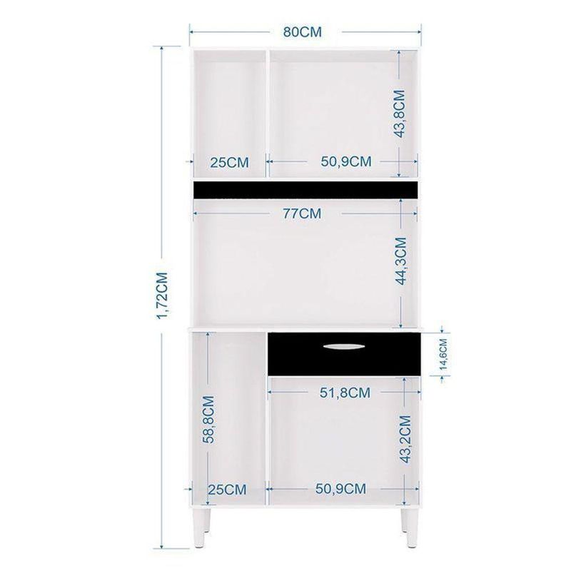 Cozinha Kit Cassia 6 Portas Branco Preto - PoquemaArmário para Cozinha Cássia 6 Portas Branco Preto - PoquemaNa hora de comprar os móveis para sua cozinha, conte com a gente! Apresentamos a Cozinha Cássia ideal para ambientes compactos, conta com 6 portas para maior praticidade no seu dia a dia, amplo espaço interno para melhor organizar seus utensílios e um lindo design na cor Branco Preto proporcionando modernidade ao ambiente, desenvolvido pela Poquema com materiais de excelentes qualidades pensando em você que não tem muito espaço mas que não abre mão da organização. Não deixe de aproveitar, confira mais sobre esse lindo móvel abaixo!Características Técnicas: - Desenvolvido 100% em MDP - Acabamento em pintura U.V na cor Branco Preto - Possui 06 Portas - Dobradiças metálicas - 01 Gaveta - Corrediças metálicas - Puxadores na cor Prata Fosco - Divisões - Kit 04 pés plástico Branco - Lindo designDimensões: Altura: 172 cm Largura: 80 cm Profundidade: 31 cmObs: Não realizamos a montagem, porém acompanha manual de instruções. Marca: | Fabricante: | Principais Características do Produto 0: | Principais Características do Produto 1: | Principais Características do Produto 3: | Dimensões do artigo: | Baterias são necessárias?: | Certificação de teste externa: | Número de caixas: | Is Fragile: | Peso do item: | Componentes incluídos: | Número da peça: | Exige montagem: | Quantidade de itens: | Número do modelo: | Cor: