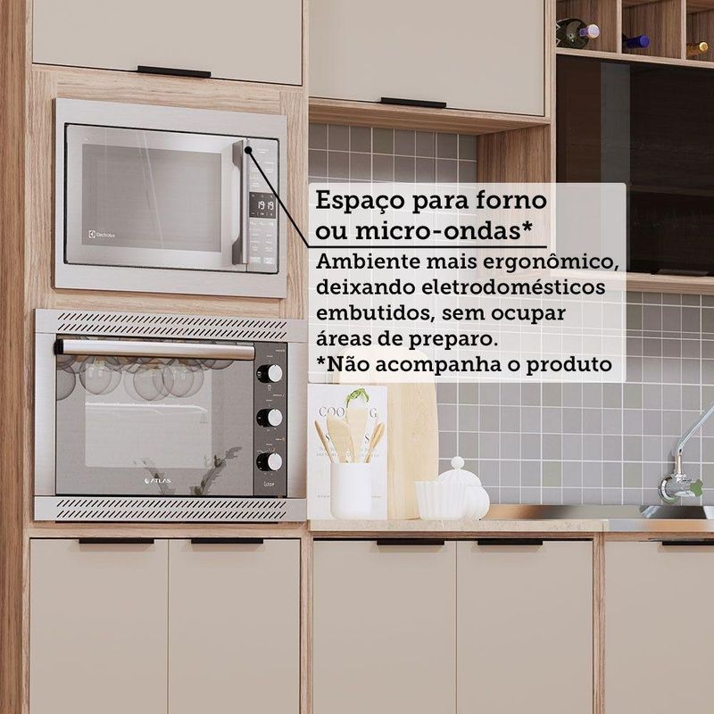 Cozinha Modulada Compacta 5 Peças Com Espaço Para Forno E Mi Vanilla/beigeCozinha Modulada Compacta 5 Pecas com Espaco para Forno e Micro-ondas sem Tampo Aspen Luciane MoveisDesenvolvida com materiais de excelencia, a Cozinha Aspen oferece excelente distribuicao de espaco interno para sua organizacao. E fabricada em 100 MDP e possui acabamento das portas em BP oferecendo durabilidade, resistencia a riscos e facil manutencao. Conta com puxadores tipo Alca em Aluminio Preto dando um toque especial de classe e sofisticacao ao ambiente. Caracteristicas: Estrutura: MDP 15mm Acabamento da Caixaria/Corpo: Pintura UV Touch Acabamento das Portas/Frontal: BP Quantidade e Tipo de Portas: 5 de Bater e 3 Basculantes Tipo de Dobradicas: Metalicas Quantidade de Gavetas: 3 Tipo de Corredicas: Metalicas Telescopicas Tipo de Puxadores: Alca em Aluminio Preto Tampo: MDP 25mm Quantidade de Prateleiras: 3 Tipo de Pes: Plastico *PS com regulagem de altura - *Poliestireno Garantia: 3 meses Sistema de Montagem: Cavilhas e Parafusos Informacao Complementar Porta Basculante com abertura auxiliada por Pistao a Gas 80N. 2 Nichos laterais. Suporta ate: 9kg na prateleira e 15kg na base. Distribua uniformemente os objetos. Espaco para Forno ou Micro-ondas. ATENCAO: Na utilizacao de FORNO ELETRICO/GAS e obrigatoria a retirada do fundo (risco de super aquecimento). As dimensoes maximas do forno devem respeitar a margem de respiro, necessitando folga de 5cm entre forno e laterais do movel. Medidas Gerais do Ambiente: Altura: 221cm Largura: 270cm Profundidade: 53cm Peso Bruto: 181kg Ambiente composto por: (A x L x P) 1-Paneleiro Torre Quente 70cm 3 Portas com Espaco para Forno e Micro-ondas Aspen Luciane Moveis (221 x 70 x 51,5) 1-Armario Aereo de Cozinha 120cm 2 Portas com Vidro Reflecta e Nichos Aspen Luciane Moveis (73 x 120 x 31,50) 1-Armario Aereo de Cozinha 80cm 1 Porta Basculante Aspen Luciane Moveis (36,5 x 80 x 31,5) 1-Balcao de Cozinha para Pia 120cm 2 Portas e 3 Gavetas sem Tampo Aspen Luciane Moveis (87 x 120 x 51,50) 1-Balcao de Cozinha 80cm 2 Portas com Tampo Aspen Luciane Moveis (89,5 x 80 x 53) Fique de olho - Siga sempre as orientacoes do fabricante e utilize seu produto de acordo com o manual. - A empresa nao se responsabiliza pelo mau uso do produto, o que pode causar perda da garantia.#8239; - Certifique se que seus dados estejam atualizados, como endereco e um telefone valido. - A entrega sera realizada no terreo, sendo assim, em predios o deslocamento da mercadoria, subir escadas, elevadores ou transporte por guincho para apartamentos fica sob responsabilidade do comprador. - Todas as nossas entregas sao realizadas em horario comercial, nao sendo possivel fazer agendamento, sugerimos acompanhar o rastreio do pedido e ter alguem para receber no endereco indicado. - Nao nos encarregamos por montagens, desmontagens e outras instalacoes. Essas demandas serao de responsabilidade do comprador. - A tonalidade da cor pode variar de acordo com a iluminacao e/ou as configuracoes do seu monitor. - Objetos e decoracoes nao acompanham os produtos, imagens sao meramente ilustrativas.
