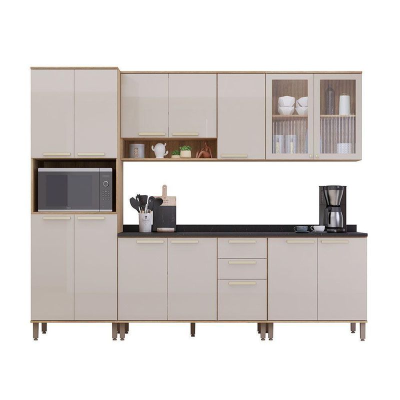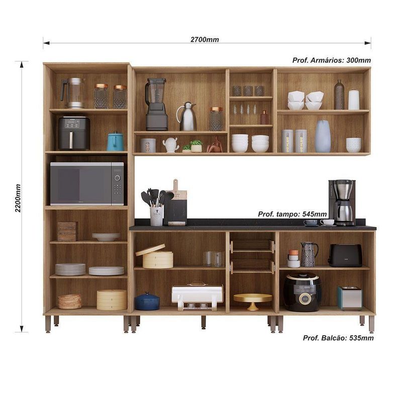 Cozinha Modulada Compacta 5 Peças Com Tampos E Sem Pia Isis Avelã/mocca LacaCozinha Modulada Compacta 5 Pecas com Tampos e sem Pia Isis Luciane MoveisDesenvolvida com materiais de excelencia, a Cozinha Isis oferece excelente distribuicao de espaco interno. E estruturada em 100 MDP e possui dobradicas slow motion com amortecedor incorporado para fechamento suave das portas. Conta com puxadores tipo aste em plastico Gold dando um toque especial de classe e elegancia. Caracteristicas Estrutura: 100 MDP Acabamento da Caixaria/Corpo: PF Acabamento das Portas/Frontal: Laca Quantidade de Portas: 14 Tipo de Abertura das Portas: de Bater/Abrir Tipo de Dobradicas: Metalicas 35mm Slow Motion Quantidade de Gavetas: 2 Tipo de Corredicas: Metalicas Telescopicas Tipo de Puxadores: Aste em Plastico Gold Quantidade de Prateleiras: 8 Tampo e Rodatampo: Tampos em MDP 25mm e rodatampo de 6cm de altura Sistema de Montagem: Cavilhas e Parafusos Garantia do Fabricante: 3 meses Medidas Gerais do Ambiente 220 x 270 x 54,5 (Alt x Larg x Prof - cm) Volumes: 12 unidades Ambiente Composto por - 1 Paneleiro 70cm 4 Portas com 1 Nicho Microondas Isis Luciane Moveis 220 x 70 x 53,5 (A x L x P - cm) - 1 Armario Aereo 120cm 3 Portas e Nicho Isis Luciane Moveis 73,3 x 120 x 30 (A x L x P - cm) - 1 Armario Aereo 80Cm 2 Portas com Vidro Canelado Isis Luciane Moveis 73,3 x 80 x 30 (A x L x P - cm) - 1 Balcao de Pia 120cm 03 Portas e 2 Gavetas sem Tampo Isis Luciane Moveis 84,1 x 120 x 53,5 (A x L x P - cm) - 1 Balcao de Cozinha com Tampo 80cm 2 Portas Isis Luciane Moveis 86,6 x 80 x 54,5 (A x L x P - cm) - 1 Tampo para Balcao 120cm em MDP 25mm com Acabamento em BP Luciane Moveis 2,5 x 120 x 54,5 (A x L x P - cm) Fique de olho - Siga sempre as orientacoes do fabricante e utilize seu produto de acordo com o manual. - A empresa nao se responsabiliza pelo mau uso do produto, o que pode causar perda da garantia.#8239; - Certifique se que seus dados estejam atualizados, como endereco e um telefone valido. - A entrega sera realizada no terreo, sendo assim, em predios o deslocamento da mercadoria, subir escadas, elevadores ou transporte por guincho para apartamentos fica sob responsabilidade do comprador. - Todas as nossas entregas sao realizadas em horario comercial, nao sendo possivel fazer agendamento, sugerimos acompanhar o rastreio do pedido e ter alguem para receber no endereco indicado. - Nao nos encarregamos por montagens, desmontagens e outras instalacoes. Essas demandas serao de responsabilidade do comprador. - A tonalidade da cor pode variar de acordo com a iluminacao e/ou as configuracoes do seu monitor. - Objetos e decoracoes nao acompanham os produtos, imagens sao meramente ilustrativas.