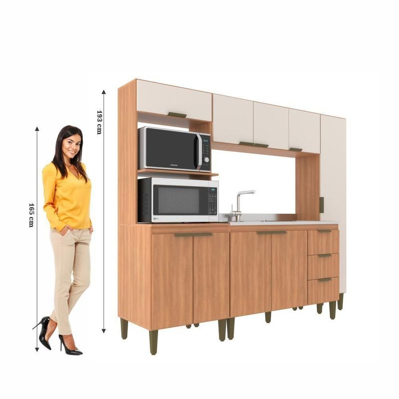 Cozinha Modulada Compacta Bia 4 Pecas Com Paneleiro Torre Quente E Aéreo Freijó/off WhiteTransforme sua cozinha com a Cozinha Bia 4 Peças Freijó/Off White, uma solução completa que combina design moderno e funcionalidade excepcional para o seu dia a dia.Esta cozinha é fabricada em MDP de alta durabilidade, com acabamento especial nas cores Freijó e Off White, oferecendo resistência e beleza que perduram no tempo. Suas dimensões são 193 cm de altura, 220 cm de largura e 53 cm de profundidade, aproveitando perfeitamente o espaço disponível.A Cozinha Bia 4 Peças oferece organização inteligente com 9 portas e 3 gavetas equipadas com corrediças metálicas para deslizamento suave. Os armários aéreos superiores são ideais para armazenar louças e utensílios, enquanto os balcões inferiores com prateleiras internas maximizam o espaço de armazenamento, mantendo sua cozinha sempre organizada.Itens inclusos:Uma (1) cozinha completa Bia 4 peças com armários aéreos e balcões (Não acompanha tampo).Pés em polipropileno para estabilidade.Requer montagem com manual disponível via QR Code na etiqueta da caixa.Material:: MDP | Material das alças:: Plástico | Material das corrediças:: Metálica | Material das dobradiças:: Metálica | Marca: J Carvalho Móveis | Material dos pés:: Polipropileno | É personalizado: Não | Modelo detalhado: Cozinha Bia 4 Pecas Freijo/off White | Peso do armário: 110 | Inclui tampo: Não | Material das alças: Plástico | Modelo: Cozinha Bia 4 peças | Quantidade de gavetas: 3 | Linha: Bia | Largura do armário: 220 | Quantidade de portas: 9 | Materiais das portas: MDP | Inclui manual de montagem: Sim | Altura do armário: 193 | Com prateleiras: Sim | Tipo de móveis de cozinha: Cozinha completa | Material das corrediças: Metálica | Requer montagem: Sim | Estilo: Moderno | Cor: Freijó | Cor principal: Marrom-claro | Profundidade do armário: 53 | SKU: 6494811 | Condição do item: | Código universal de produto: 7898737190360 | É kit: Não | Is Fragile: true | do modelo: 6494811 | Baterias são necessárias?: false | Palavras-chave de Pesquisa: Balcão, Cozinha, Cozinha compacta, Paneleiro, Aéreo | da peça: 6494811 | de caixas: 4 | Componentes incluídos: Manual do usuário | Fabricante: J Carvalho Móveis | Quantidade de itens: 1 | Principais Características do Produto 0: Acabamento bicolor | Certificação de teste externa: Não | Principais Características do Produto 1: Paneleiro | Principais Características do Produto 2: Pés em Polipropileno | Exige montagem: true | Peso do item: value=110;unit=kilograms | Dimensões do item P x L x A: width#value=220;depth#unit=centimeters;height#value=193;height#unit=centimeters;depth#value=53;width#unit=centimeters | Altura da embalagem do vendor: 9 | Largura da embalagem do vendor: 52,5 | Comprimento da embalagem do vendor: 52,5 cm