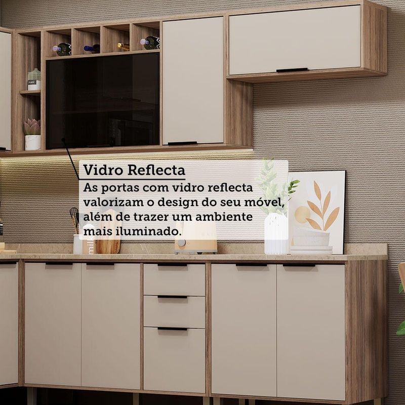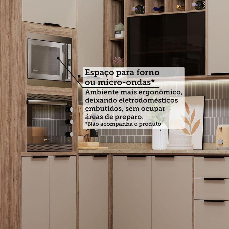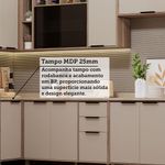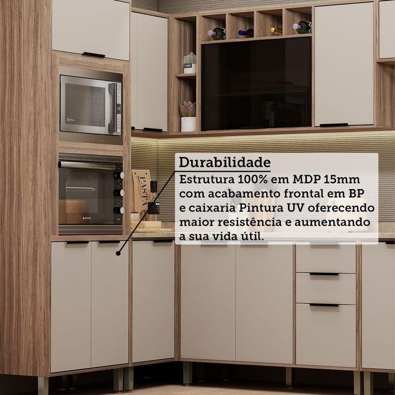 Cozinha Modulada Completa 7 Peças Com Espaço Para Forno E Mi Vanilla/beigeCozinha Modulada Completa 7 Pecas com Espaco para Forno e Micro-ondas com Tampo Aspen Luciane MoveisDesenvolvida com materiais de excelencia, a Cozinha Aspen oferece excelente distribuicao de espaco interno para sua organizacao. E fabricada em 100 MDP e possui acabamento das portas em BP oferecendo durabilidade, resistencia a riscos e facil manutencao. Conta com puxadores tipo Alca em Aluminio Preto dando um toque especial de classe e sofisticacao ao ambiente. Caracteristicas: Estrutura: MDP 15mm Acabamento da Caixaria/Corpo: Pintura UV Touch Acabamento das Portas/Frontal: BP Quantidade e Tipo de Portas: 9 de Bater e 2 Basculantes Tipo de Dobradicas: Metalicas Quantidade de Gavetas: 3 Tipo de Corredicas: Metalicas Telescopicas Tipo de Puxadores: Alca em Aluminio Preto Tampo: MDP 25mm Quantidade de Prateleiras: 3 Tipo de Pes: Plastico *PS com regulagem de altura - *Poliestireno Garantia: 3 meses Sistema de Montagem: Cavilhas e Parafusos Informacao Complementar Porta Basculante com abertura auxiliada por Pistao a Gas 80N. 2 Nichos laterais. Suporta ate: 9kg na prateleira e 15kg na base. Distribua uniformemente os objetos. Espaco para Forno ou Micro-ondas. ATENCAO: Na utilizacao de FORNO ELETRICO/GAS e obrigatoria a retirada do fundo (risco de super aquecimento). As dimensoes maximas do forno devem respeitar a margem de respiro, necessitando folga de 5cm entre forno e laterais do movel. Medidas Gerais do Ambiente: Altura: 221cm Largura: 165cm x 253cm Profundidade: 53cm Peso Bruto: 329,5kg Ambiente composto por: (A x L x P) 1-Paneleiro Torre Quente 70cm 3 Portas com Espaco para Forno e Micro-ondas Aspen Luciane Moveis (221 x 70 x 51,5) 1-Armario Aereo de Cozinha 120cm 2 Portas com Vidro Reflecta e Nichos Aspen Luciane Moveis (73 x 120 x 31,50) 1-Armario Aereo de Cozinha 80cm 1 Porta Basculante Aspen Luciane Moveis (36,5 x 80 x 31,5) 1-Armario Aereo de Cozinha Canto Reto 95cm 2 Portas Aspen Luciane Moveis (73 x 95 x 53) 1-Balcao de Cozinha para Pia 120cm 2 Portas e 3 Gavetas sem Tampo Aspen Luciane Moveis (87 x 120 x 51,50) 1-Balcao de Cozinha 80cm 2 Portas com Tampo Aspen Luciane Moveis (89,5 x 80 x 53) 1-Balcao Canto Reto 95cm 1 Pt com Tampo Aspen Luciane Moveis (89,5 x 95 x 53) 1-Tampo para Balcao 120cm Aspen Luciane Moveis (8,5 x 120 x 53) Fique de olho - Siga sempre as orientacoes do fabricante e utilize seu produto de acordo com o manual. - A empresa nao se responsabiliza pelo mau uso do produto, o que pode causar perda da garantia.#8239; - Certifique se que seus dados estejam atualizados, como endereco e um telefone valido. - A entrega sera realizada no terreo, sendo assim, em predios o deslocamento da mercadoria, subir escadas, elevadores ou transporte por guincho para apartamentos fica sob responsabilidade do comprador. - Todas as nossas entregas sao realizadas em horario comercial, nao sendo possivel fazer agendamento, sugerimos acompanhar o rastreio do pedido e ter alguem para receber no endereco indicado. - Nao nos encarregamos por montagens, desmontagens e outras instalacoes. Essas demandas serao de responsabilidade do comprador. - A tonalidade da cor pode variar de acordo com a iluminacao e/ou as configuracoes do seu monitor. - Objetos e decoracoes nao acompanham os produtos, imagens sao meramente ilustrativas.