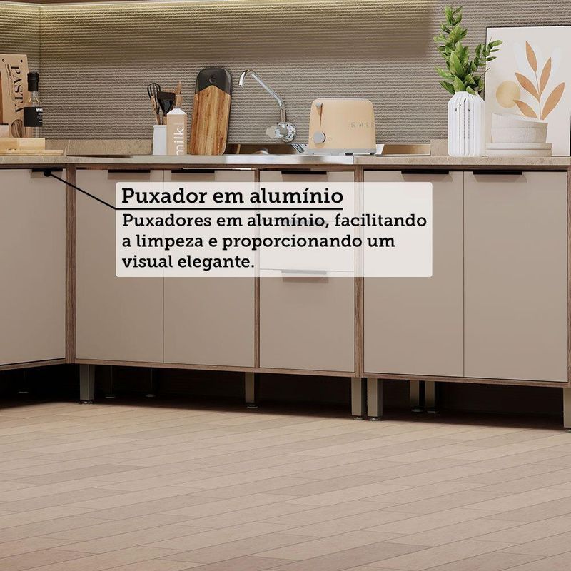 Cozinha Modulada Completa 8 Peças Com Espaço Para Forno E Mi Vanilla/beigeCozinha Modulada Completa 8 Pecas com Espaco para Forno e Micro-ondas sem Tampo Aspen Luciane MoveisDesenvolvida com materiais de excelencia, a Cozinha Aspen oferece excelente distribuicao de espaco interno para sua organizacao. E fabricada em 100 MDP e possui acabamento das portas em BP oferecendo durabilidade, resistencia a riscos e facil manutencao. Conta com puxadores tipo Alca em Aluminio Preto dando um toque especial de classe e sofisticacao ao ambiente. Caracteristicas: Estrutura: MDP 15mm Acabamento da Caixaria/Corpo: Pintura UV Touch Acabamento das Portas/Frontal: BP Quantidade e Tipo de Portas: 10 de Bater e 2 Basculantes Tipo de Dobradicas: Metalicas Quantidade de Gavetas: 3 Tipo de Corredicas: Metalicas Telescopicas Tipo de Puxadores: Alca em Aluminio Preto Tampo: MDP 25mm Quantidade de Prateleiras: 3 Tipo de Pes: Plastico *PS com regulagem de altura - *Poliestireno Garantia: 3 meses Sistema de Montagem: Cavilhas e Parafusos Informacao Complementar Porta Basculante com abertura auxiliada por Pistao a Gas 80N. 2 Nichos laterais. Suporta ate: 9kg na prateleira e 15kg na base. Distribua uniformemente os objetos. Espaco para Forno ou Micro-ondas. ATENCAO: Na utilizacao de FORNO ELETRICO/GAS e obrigatoria a retirada do fundo (risco de super aquecimento). As dimensoes maximas do forno devem respeitar a margem de respiro, necessitando folga de 5cm entre forno e laterais do movel. Medidas Gerais do Ambiente: Altura: 221cm Largura: 165cm x 243cm Profundidade: 53cm Peso Bruto: 318,9kg Ambiente composto por: (A x L x P) 1-Paneleiro Torre Quente 70cm 3 Portas com Espaco para Forno e Micro-ondas Aspen Luciane Moveis (221 x 70 x 51,5) 1-Paneleiro 70cm 2 Portas e Porta Condimentos Aspen Luciane Moveis (221 x 70 x 51,5) 1-Armario Aereo de Cozinha 120cm 2 Portas com Vidro Reflecta e Nichos Aspen Luciane Moveis (73 x 120 x 31,50) 1-Armario Aereo de Cozinha 80cm 1 Porta Basculante Aspen Luciane Moveis (36,5 x 80 x 31,5) 1-Armario Aereo de Cozinha Canto Reto 95cm 2 Portas Aspen Luciane Moveis (73 x 95 x 53) 1-Balcao de Cozinha para Pia 120cm 2 Portas e 3 Gavetas sem Tampo Aspen Luciane Moveis (87 x 120 x 51,50) 1-Balcao de Cozinha 80cm 2 Portas com Tampo Aspen Luciane Moveis (89,5 x 80 x 53) 1-Balcao Canto Reto 95cm 1 Pt com Tampo Aspen Luciane Moveis (89,5 x 95 x 53) Fique de olho - Siga sempre as orientacoes do fabricante e utilize seu produto de acordo com o manual. - A empresa nao se responsabiliza pelo mau uso do produto, o que pode causar perda da garantia.#8239; - Certifique se que seus dados estejam atualizados, como endereco e um telefone valido. - A entrega sera realizada no terreo, sendo assim, em predios o deslocamento da mercadoria, subir escadas, elevadores ou transporte por guincho para apartamentos fica sob responsabilidade do comprador. - Todas as nossas entregas sao realizadas em horario comercial, nao sendo possivel fazer agendamento, sugerimos acompanhar o rastreio do pedido e ter alguem para receber no endereco indicado. - Nao nos encarregamos por montagens, desmontagens e outras instalacoes. Essas demandas serao de responsabilidade do comprador. - A tonalidade da cor pode variar de acordo com a iluminacao e/ou as configuracoes do seu monitor. - Objetos e decoracoes nao acompanham os produtos, imagens sao meramente ilustrativas.