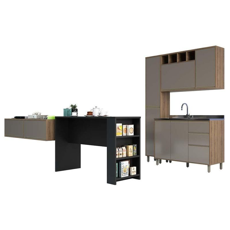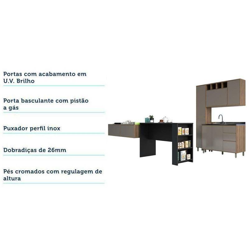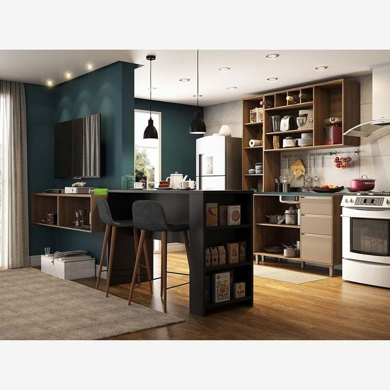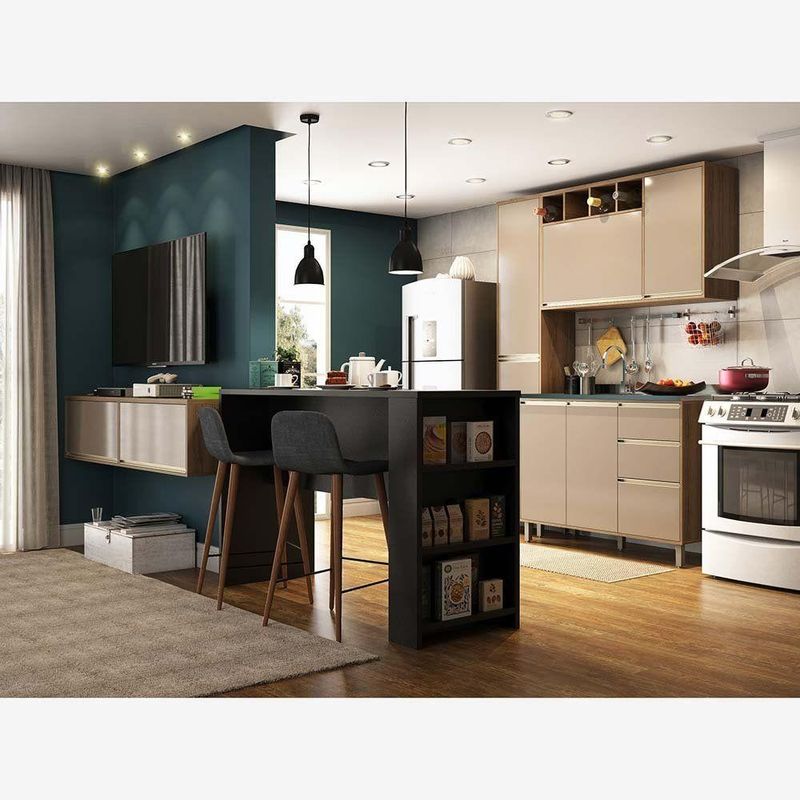 Cozinha Pequena 6 Peças Com Bancada Para Tv Balcão Ilha Balcão De Pia E Armários Mel Luciane Móveis Vanilla Com GraffCozinha modulada Americana, uma solução completa para deixar seu ambiente super aconchegante e requintado, atendendo Cozinha e Sala de Estar. Composta por 6 peças cuidadosamente pensadas para sua organização. Na sala de estar 2 armários suspensos com portas basculantes com abertura em pistão a gás. A Bancada Ilha Gourmet além de divisor de ambientes torna os momentos de refeição e descontração ainda mais agradáveis. Na cozinha os módulos são práticos e funcionais, com Paneleiro, Armário Aéreo 120cm com 2 portas e nicho adega, Balcão de Pia. As portas embutidas remetem ao planejado, com acabamento impecável. Os módulos são montados individualmente e permite a instalação da forma que melhor se adeque ao seu espaço. Para este ambiente utilizamos como proposta de parede: Parede Cozinha: 160cm Parede Sala + Divisor de ambientes (Bancada Ilha): 315cm Características da Cozinha Mel: Corpo/Caixaria: MDP Vanilla UV Touch Frontais: MDP Graff UV Brilho Bancada Ilha Gourmet: Acabamento em BP Fosco Corrediças Telescópicas: Abertura total das gavetas Dobradiças: Metálicas Ø26mm Puxadores: Alumínio Gola - Inox Pés: P S com regulagem de altura na cor Champagne Cozinha Composta por: 2 Armários 80cm com portas basculantes 1 Bancada Ilha Gourmet 1 Paneleiro 2 Portas 5 Prateleiras 1 Armário Aéreo 120cm 1 Porta de Bater, 1 Porta Basculante e Nicho 1 Balcão 120cm de Pia 2 Portas 3 Gavetas (sem tampo) Dimensões do Balcão de Cozinha Para Pia Sem Tampo 120 cm 2 Portas de abrir 3 Gavetas Altura: 87 cm Largura: 120 cm Profundidade: 51,5 cm Peso: 50,7 kg Dimensões do Armário Aéreo 120 cm 1 Porta de abrir 1 Porta Basculante e Nicho Superior Altura: 73 cm Largura: 120 cm Profundidade: 31,5 cm Peso: 33,4 kg Dimensões do Paneleiro Simples 40 cm 2 Portas de abrir Altura: 221 cm Largura: 40 cm Profundidade: 31,5 cm Peso: 36,5 kg Dimensões da Bancada Ilha Gourmet 150cm Altura: 97 cm Largura: 150 cm Profundidade: 54,5 cm Peso: 41,1 kg Dimensões do Armário Aéreo 80 cm 1 Porta Basculante Altura: 36,5 cm Largura: 80 cm Profundidade: 31,5 cm Peso: 11,4 kg Garantia de 3 meses contra defeito de fabricação. Informações complementares: Fique de olho: siga sempre as orientações do fabricante e utilize seu produto de acordo com o manual. A empresa não se responsabiliza pelo mau uso do produto, o que pode causar perda da garantia.#8239; Certifique se que seus dados estejam atualizados, como endereço e um telefone válido. A entrega será realizada no térreo, sendo assim em prédios o deslocamento da mercadoria, subir escadas, elevadores ou transporte por guincho para apartamentos fica sob responsabilidade do comprador. Todas as nossas entregas são realizadas em horário comercial, não sendo possível fazer agendamento, sugerimos acompanhar o rastreio do pedido e ter alguém para receber no endereço indicado. Não nos encarregamos por montagens, desmontagens e outras instalações, serão de responsabilidade do comprador.