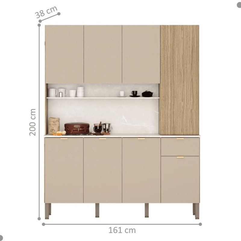 Cozinha Slow Freijó/vanilla/cp-riscatto Freijó (O Armário possui 8 portas e 1 gaveta com corrediças telescópicas destaca-se por sua praticidade e eficiência de uso, podendo ser utilizada como complemento de cozinha.Estrutura em MDP 12/15mm com acabamento Riscatto mas portas do paneleiro.Dimensões do Produto:Altura: 200 cmLargura: 161 cmProfundidade: 38,8 cmInformações do Produto:Cor: Freijó/VanillaPortas: Sim (8)Gavetas: Sim (1) Corrediça telescópicasPrateleira: Sim (9)Pés: Sim (6) RegulávelMaterial Principal: MDP 12/15mmItens Inclusos:1 ArmárioManual de MontagemKit completo para montagem e manual de instruçõesGarantia:3 meses contra defeito de fabricaçãoInformações Adicionais:- Fotos meramente ilustrativas do produto no ambiente.- Os objetos que ambientam as fotos não acompanham o produto;- Verificar descrição e tamanho do produto antes da compra.- Avaliar a mercadoria no ato do recebimento e recuse em caso de divergência ou avarias.- Mantenha as informações de contato e endereço de entrega atualizados para entrarmos em contato caso necessário.- Limpar com flanela ou pano macio seco, não utilizar produtos abrasivos, desengordurantes, álcool ou solvente. Não expor o produto diretamente à luz solar e à umidade.* Sugerimos a contratação de um montador profissional para a montagem do produto. Não nos responsabilizamos por avarias causadas no ato da montagem.* Não nos responsabilizamos pela montagem e desmontagem do produto no ato da entrega e devolução, assim como os custos gerados nestas situações.* A transportadora entregará o produto no andar térreo do endereço de entrega.* Não nos responsabilizamos por subir escadas, corredores e elevadores ou transporte por guincho em apartamentos. Width: 68 | REQUIRES_ASSEMBLY: Sim | Weight: 73.7 | Color: Marrom | Height: 238 | Modelo: Slow | Altura do Produto com Embalagem (cm): 238 | Tipo de Cama/Cabeceira: Padrão | Material para Filtro: MDP | Tonalidade (Leroy): Marrom | Comprimento Produto com Embalagem (cm): 166,3 | Fabricante: Kits Paraná | Length: 166 | Largura Produto com Embalagem (cm): 68,9 | Num. Volumes: 3 | Peso Produto Com Embalagem (Kg): 73,7