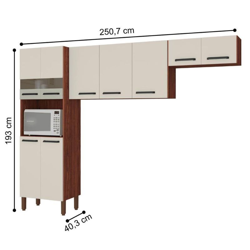 Cozinha Versalhes Nogueira Off-whiteA Cozinha traz a praticidade e funcionalidade que você precisa, suas portas superiores se tornam o diferencial do produto pelo vidro espelhado, trazendo o destaque para a cozinha. Suas repartições bem elaboradas podem acomodar todas as suas necessidades para com uma cozinha, além de dispor de um nicho para micro ou forno elétrico. Sua matéria prima vem de madeiras de reflorestamento se tornando uma peça de design e responsabilidade com o meio ambiente.Informações do produto:Altura: 193 cmLargura: 250,7 cmProfundidade: 40,3 cmPortas: Sim (9)Gavetas: NãoPrateleiras: Sim (4 internas)Nichos: Sim (1)Pés: Sim (2)Cor: Nogueira Off WhiteItens inclusos:01 ArmárioKit completo para montagem e manual de instruçõesGarantia: 3 meses.Informações Complementares:- Verificar o tamanho e detalhes do produto antes da compra.- Fotos meramente ilustrativa.- A transportadora entregará o produto no andar térreo do endereço de entrega.- Avaliar a mercadoria no ato do recebimento e recusar em caso de divergência ou avarias.- Não nos responsabilizamos pela montagem e desmontagem do produto no ato da entrega e devolução, assim como os custos gerados nestas situações.- Sugerimos a contratação de um montador profissional para a montagem do produto. Não nos responsabilizamos por avarias causadas no ato da montagem. Altura do Produto com Embalagem (cm): 155 | Width: 60 | Height: 155 | Tipo de Cama/Cabeceira: Padrão | Color: Branco | Comprimento Produto com Embalagem (cm): 180,3 | Weight: 572.0 | Peso Produto Com Embalagem (Kg): 57,2 | Material para Filtro: MDP | Modelo: Versalhes | Length: 180 | Tonalidade (Leroy): Branco | REQUIRES_ASSEMBLY: Sim | Largura Produto com Embalagem (cm): 60,8 | Fabricante: Kits Paraná | Num. Volumes: 2