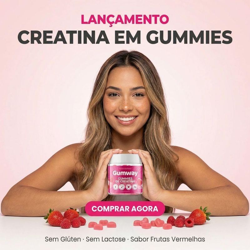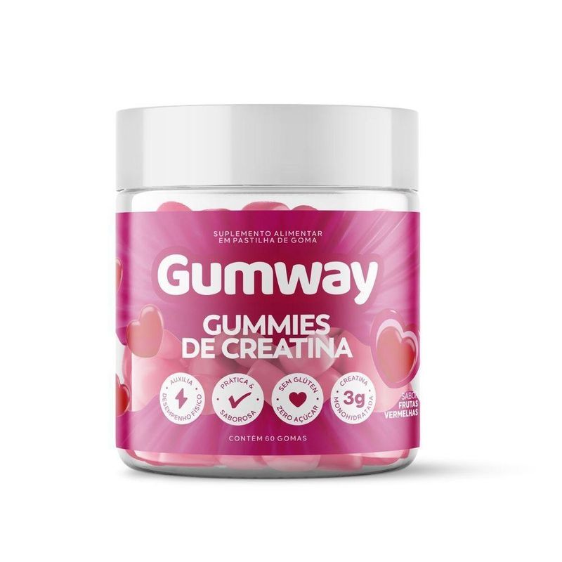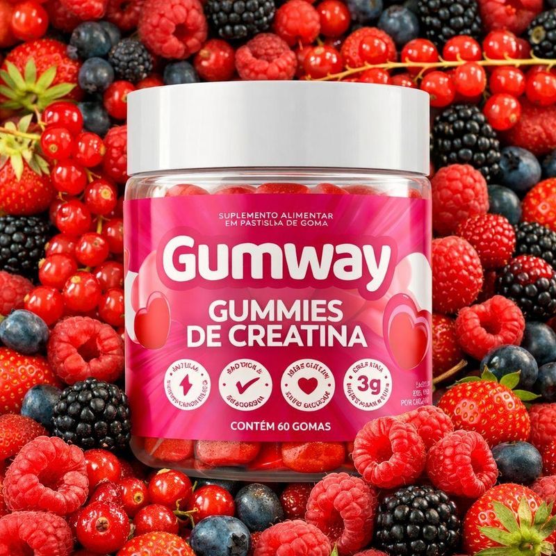 Creatina Monohidratada Gumway Frutas VermelhasGumway Creatina Gummies Frutas Vermelhas 60 Unidades – 1,5g de Creatina por GomaMais energia, mais desempenho e muito mais praticidade na sua rotina. A Goma de Creatina Frutas Vermelhas Gumway foi desenvolvida para transformar a suplementação tradicional em uma experiência moderna, saborosa e fácil de manter todos os dias.Com textura macia e sabor levemente adocicado de frutas vermelhas, elimina a necessidade de shakes, copos e misturas, facilitando o consumo diário de creatina com muito mais conveniência.Cada goma fornece 1,5g de creatina, nutriente amplamente utilizado por praticantes de atividades físicas para auxiliar no desempenho físico, contribuindo para força, potência e explosão muscular, especialmente em exercícios de alta intensidade e curta duração.Principais Benefícios1,5g de creatina por gomaAuxilia no desempenho físicoPode contribuir para aumento de força e potência muscularPraticidade total: sem preparo e sem bagunçaTextura macia e fácil de consumirSabor delicioso de frutas vermelhasIdeal para rotina pré ou pós-treinoSem lactoseSem glútenPara Quem é IndicadaIndicada para adultos que praticam musculação, treinos funcionais, esportes de alta intensidade ou desejam complementar a rotina com creatina de forma prática e consistente.Como ConsumirConsumir 2 gomas ao dia ou conforme orientação de médico ou nutricionista.Informações do ProdutoProduto: Suplemento alimentar em gomaQuantidade: 60 unidadesSabor: Frutas VermelhasUso: AdultoImportante: Este produto não é medicamento. Não exceder a recomendação diária indicada na embalagem. Consulte um profissional de saúde antes de iniciar a suplementação.creatina em goma frutas vermelhas, gummies de creatina 60 unidades, suplemento para desempenho físico, creatina para força muscular, goma de creatina prática, creatina sem lactose sem glútenAnvisa 25351.123456/2024-81