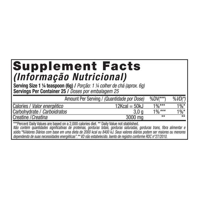 A Creatine Turbo da Black Skull da linha Caveira Preta Series da Black Skull usa é um suplemento a base de Creatina Monohidratada e Maltodextrina. Onde é comprovado que, a utilização de carboidratos em conjunto com a creatina, promove maior eficácia no efeito da creatina, além do carboidrato agir no aumento de energia, visando apoiar seus resultados nas atividades físicas, oferecendo maior energia e consecutivamente, melhor desempenho. Com seus benefícios, apoia também o ganho de massa e a conclusão dos treinos mantendo a qualidade de suas repetições. beneficios: * Responsável pela hidratação das células musculares; * Melhor capacidade Muscular; * Treinos mais intensos com melhores resultados; * Ótima dissolução; * Melhor aproveitada pelo organismo; * Promove aumento da força. * Auxilia no ganho de massa muscular.