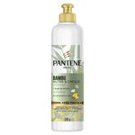 Creme de Pentear Pantene Bambu 240gPantene Bambu Nutrição e Crescimento é uma linha criada para nutrir os fios desde a raiz e garantir um cabelo mais forte e resistente à quebra. Inspirada na árvore que cresce mais rápido no mundo, a linha traz ingredientes naturais que proporcionam força, flexibilidade e crescimento ao fios. A combinação de extrato de bambu, óleo de rícino e cafeína combate o ciclo de quebra do cabelo e abre novas possibilidades para você se sentir empoderada e se expressar usando seu cabelo do seu jeito. O Creme para Pentear Pantene Bambu Nutre & Cresce tem em sua formulação extrato de bambu e óleo de rícino oferece força e nutrição principalmente para pontas danificadas para evitar o corte e fazer o cabelo crescer forte. Este produto é livre de sulfatos agressivos, óleos minerais e traz uma nova fragrância suave e fresca de Pantene. Uma linha criada para nutrir os fios e garantir força, flexibilidade e crescimento da raiz até as pontas; Pantene Bambu Nutrição e Crescimento traz ingredientes direcionadores que reforçam as áreas fragilizadas ao longo da fibra capilar, deixando o cabelo mais macio e resistente; A fórmula contém antioxidante essenciais que protegem o interior da fibra capilar de agressores externos e lipídios fortalecedores que preenchem os poros para proporcionar flexibilidade e resistência; Pantene Bambu Nutrição e Crescimento é uma linha completa de cuidados com o cabelo, com shampoo, condicionador, creme para pentear e máscara intensiva; A combinação de extrato de bambu, óleo de rícino e cafeína combate o ciclo de quebra dos cabelos e proporciona nutrição da raiz até as pontas; Experimente uma nova fragrância fresca e suave, inspirada no aroma natural das florestas de bambu; Limpeza profunda, proteção e reparação das proteínas do cabelo para fios mais fortes e hidratados; 0% parabenos, sulfatos e óleo mineral.