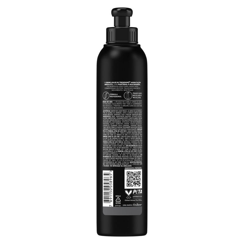 • O Creme Leave-In TRESemmé Hidratação Profunda devolve imediatamente a hidratação e suavidade das fibras, sem pesar • Enriquecido, com pantenol e niacinamida para combate ao ressecamento dos fios • Proporciona hidratação absoluta e movimento natural dos fios • O Creme Leave-In TRESemmé Hidratação Profunda devolve imediatamente o condicionamento e suavidade das fibras, sem pesar • Protege contra os danos causados pelos raios UV e possui um intenso poder de hidratação para cabelos macios • Possui intenso poder hidratante, com Pantenol e Niacinamida, para cabelos hidratados e fios com movimento natural TENHA CABELOS PROFUNDAMENTE HIDRATADOS Conheça a fórmula hidratante de alta penetração do Creme Leave-In TRESemmé Hidratação Profunda, que garante cabelos hidratados e macios instantaneamente. A linha hidratação profunda promove um tratamento de salão em casa! Utilizado por muitos cabelereiros, a linha restaura a maciez e deixa o cabelo impecável. 1. Hidrata profundamente o cabelo: A linha Hidratação Profunda age nos fios do cabelo penetrando profundamente nas fibras capilares. 2. Restaura a maciez dos fios: Com sua fórmula única, os produtos são especialistas quando o assunto é restaurar a maciez perdida dos fios, deixando-os mais sedosos ao toque. Recupere a suavidade e a maleabilidade dos seus cabelos. 3. Formulação ideal para cabelos profundamente hidratados: A linha conta com pantenol e niacinamida, conhecidos por seus diversos benefícios capilares. O pantenol hidrata e fortalece fortemente os fios, e a niacinamida cuida profundamente do couro cabeludo deixando-o saudável para o crescimento dos fios. Para cabelos profundamente hidratados, use também o shampoo e condicionador da linha TRESemmé Hidratação Profunda. Experimente também, para tratar seu cabelo: 1. Trata: a Máscara de Tratamento TRESemmé Pro-Hidratação Ativa com fórmula profissional desenvolvida com a Tecnologia Hydra-Resistance, é uma máscara capilar que promove a saúde e vitalidade capilar, garantindo fios hidratados e macios. para garantir fios hidratados e macios. TRESemmé, a marca aprovada por 9 em cada 10 cabeleireiros*. *Pesquisa realizada com profissionais de salão de beleza no Brasil.