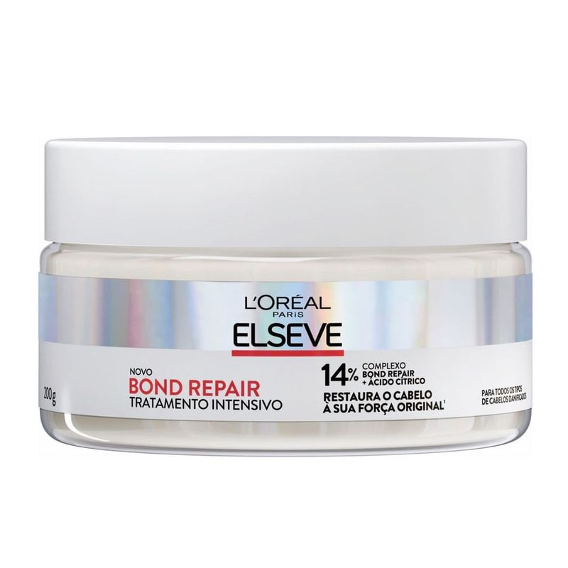 Creme de Tratamento Intensivo Elseve Bond Repair 200g Para que serve o Creme de Tratamento Intensivo? O Creme de Tratamento Intensivo Elseve Bond Repair é indicado para cabelos danificados que precisam de reparação profunda. Formulado com Ácido Cítrico, age diretamente no córtex da fibra capilar, reconstruindo as ligações internas quebradas e restaurando a força original dos fios. Essencial para complementar a rotina Bond Repair, promove nutrição intensa, maciez, resistência e brilho desde a primeira aplicação. Como usar o Creme de Tratamento Intensivo? Após lavar os cabelos com o Bond Repair Pré-Shampoo e Shampoo, aplique o creme no comprimento e pontas, evitando a raiz. Deixe agir por 5 minutos e enxágue bem. Para melhores resultados, utilize de 1 a 2 vezes por semana ou conforme a necessidade dos fios. Composição Ácido Cítrico, agentes condicionantes, emolientes reparadores e ingredientes que fortalecem a fibra capilar. Advertências Uso externo. Não ingerir. Evite contato com os olhos; em caso de contato, lave-os abundantemente. Em caso de irritação, suspenda o uso e procure orientação médica. Mantenha fora do alcance das crianças. Principais Benefícios Repara danos a nível molecular Restaura a força original dos fios Nutrição intensa com ação profunda Cabelos mais resistentes, alinhados e com brilho Essencial para completar a rotina Bond Repair