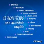 • O Creme Dental Closeup Multi Vitaminas +12 Benefícios Fresh garante até 18 horas ininterruptas de ação & proteção completa contra bactérias • É a escolha perfeita contra bactérias, mau hálito, cáries, dentes amarelados, erosão do esmalte, ataque ácido, manchas, cáries na raiz, cuidado das gengivas, sensibilidade, tártaro e placa • Creme dental com fórmula enriquecida com uma mistura de vitamina C, vitamina E, mineral de zinco e flúor para cuidar de suas necessidades de higiene bucal • Este creme dental possui tecnologia avançada com zinco, onde as moléculas são utilizadas para combater as bactérias na escovação e após o enxague, garantindo uma proteção duradoura • Creme dental com proteção completa Fresh, que entrega uma refrescância incrível • O Creme Dental Closeup Multi Vitaminas +12 Benefícios Fresh garante proteção e refrescância incrível Nascida na década de 60 como uma marca pioneira e disruptiva, Closeup trouxe a primeira pasta em gel dental dos EUA, enquanto o resto do mercado só possuía a tradicional pasta em creme branca. No Brasil, chegou pouco tempo depois, em 1971, construindo uma identidade própria e inovadora, trazendo um mix de variantes intensas e coloridas. É com esse pensamento que a marca lança Closeup Multi Vitaminas +12 Benefícios Fresh, que garante até 18 horas ininterruptas de ação & proteção completa. Ele possui fórmula enriquecida com uma mistura de vitamina C, vitamina E, mineral de zinco e flúor para cuidar de suas necessidades de higiene bucal. Este creme dental é a escolha perfeita, pois possui os 12 benefícios mais importantes para um cuidado completo: proteção contra bactérias, mau hálito, cáries, dentes amarelados, erosão do esmalte, ataque ácido, manchas, cáries na raiz, cuidado das gengivas, sensibilidade, tártaro e placa. Possui proteção completa Fresh, que proporciona uma refrescância incrível. Conselhos para uma boa higiene bucal: 1. Use Closeup regularmente após as refeições 2. Use fio dental diariamente 3. Troque sua escova dental a cada 3 meses 4. Consulte regularmente o seu dentista. Ao escovar seus dentes todos os dias após as refeições com creme dental, e escova de dentes Closeup, além de usar enxaguante bucal, você protege sua boca contra as bactérias e o mau hálito. Não importa por quem você se sente atraído, Closeup vai te dar toda a confiança que precisa para chegar mais perto!