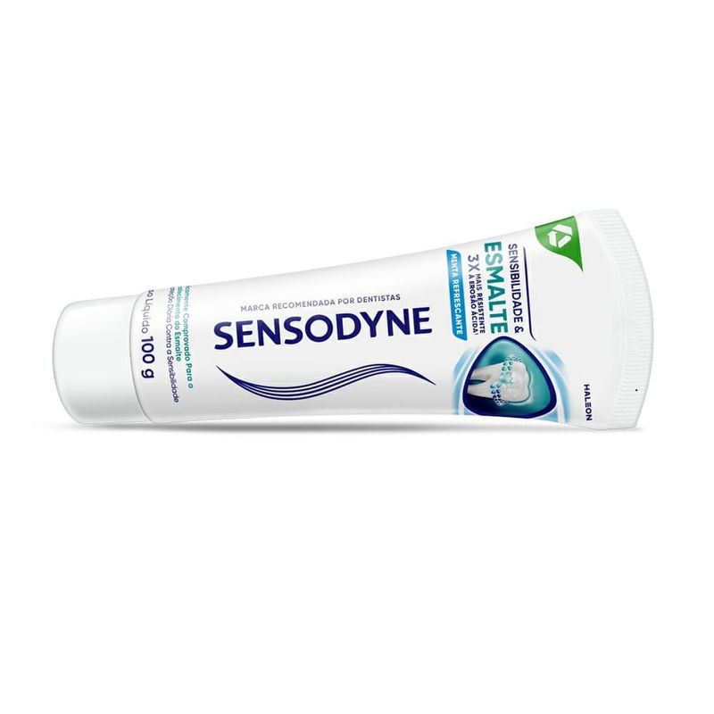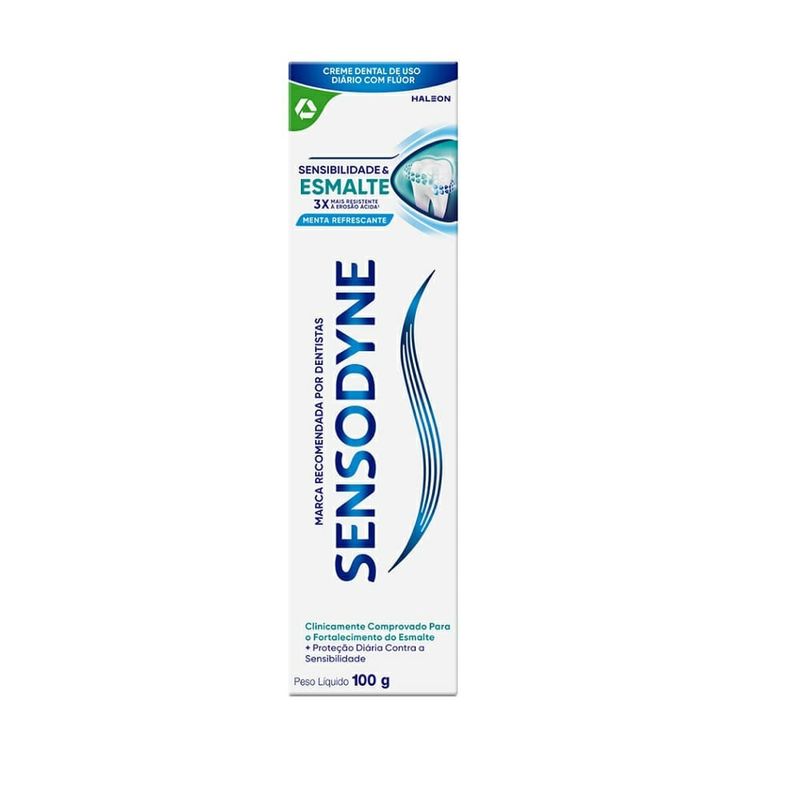 Creme Dental Sensodyne Sensibilidade & Esmalte Menta Refrescante 100g Proteja seu sorriso com o Creme Dental Sensodyne Sensibilidade & Esmalte Menta Refrescante 100g! Desenvolvido especialmente para fortalecer o esmalte e aliviar a sensibilidade dental, este creme dental proporciona proteção completa enquanto oferece um frescor duradouro de menta. Características Principais Fortalecimento do Esmalte: Sua fórmula avançada ajuda a fortalecer o esmalte, prevenindo o desgaste ácido e garantindo dentes mais resistentes. Alívio da Sensibilidade: Proporciona alívio eficaz e duradouro da sensibilidade, permitindo que você desfrute de alimentos e bebidas quentes ou frias sem desconforto. Sabor de Menta Refrescante: Deixa a boca com uma sensação agradável de frescor que dura por horas após cada escovação. Proteção Contra Cáries: Contém flúor, que protege os dentes contra cáries e mantém a saúde bucal equilibrada. Uso Diário: Ideal para o uso diário, proporcionando proteção contínua ao esmalte e alívio da sensibilidade. Diferenciais Combate à Sensibilidade e Fortalecimento do Esmalte: A combinação perfeita para quem sofre de sensibilidade e deseja proteger o esmalte contra o desgaste ácido. Fórmula de Alta Eficácia: Sensodyne é uma marca de referência no cuidado com dentes sensíveis, conhecida pela qualidade e inovação de suas fórmulas. Frescor Prolongado: O sabor de menta refrescante proporciona uma sensação agradável e duradoura de limpeza e frescor. Precauções de Uso Uso Regular: Escove os dentes ao menos duas vezes ao dia ou conforme orientação do dentista. Cuidado com Crianças: Para crianças menores de 12 anos, recomenda-se a supervisão de um adulto para evitar a ingestão acidental do creme dental.