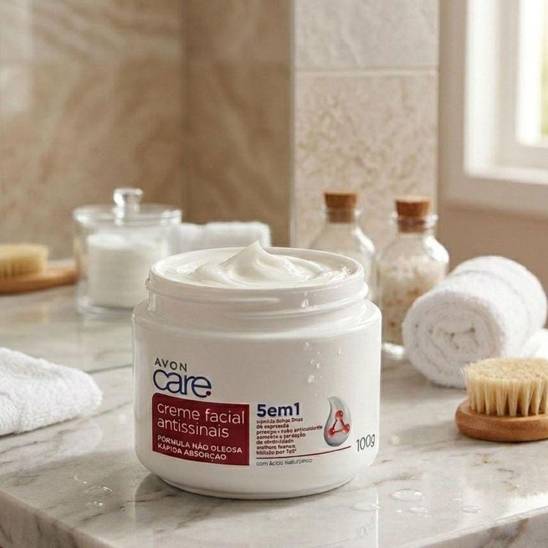 Creme Facial Antissinais Avon Care 100gA Avon é uma marca que oferece uma variedade de produtos para cuidados com a pele facial. Se você deseja protegê-la e mantê-la saudável, essa pode ser uma boa opção.O que você precisa saber sobre este produto. Peso da unidade é de 100 g.. Creme antissinais.. Recomendado para pessoas com mais de 30 anos.. É um cosmético hipoalergênico.. É livre de parabenos.IngredientesÁGUA, BENZOATO DE ALQUILA C12 15, GLICERINA, ESTEARATO DE GLICERILA, PROPILENO GLICOL, METOXCINAMATO DE ETILHEXYL, BUTILENO GLICOL, ESTEARATO DE PEG 40, CARBÔMERO, POLIISOBUTENO HIDROGENADO, STEARETH 2, LACTATO DE CETILA, UREIA IMIDAZOLIDINILA, FRAGRÂNCIA, HIDRÓXIDO DE POTÁSSIO, EDTA DINOSSÓDICO, METILPARABENO, GOMA XANTANA, ÁCIDO TIODIPROPIONICO, ACETATO DE TOCOFEROL, ELASTINA HIDROLISADA, COLÁGENO SOLÚVEL, EXTRATO DE FLOR DE CEREUS GRANDIFLORUS.