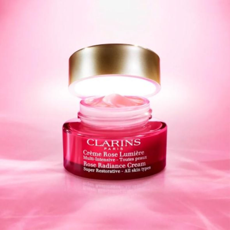 Creme Multifuncional Iluminador Clarins Rose Radiance - 50MUma nova geração de creme antienvelhecimento para redensificar a pele e aumentar o brilho!“Sinto-me bem comigo mesma, mas perdi aquela luminosidade radiante e minha pele precisa ter densidade novamente...” Esse sentimento, experimentado por muitas mulheres, levou a Clarins a criar seu mais novo cuidado com a pele, que aumenta a luminosidade e aprimora a beleza: Rose Radiance Cream.Em sua fórmula criada por especialistas, os Laboratórios Clarins combinaram os reforçadores instantâneos de luminosidade mais eficazes com os melhores e essenciais ingredientes para devolver a densidade da pele. O que o torna realmente irresistível? Sua cor rosa! Um tom arrojado que nos lembra que você pode se sentir vibrante, jovem e radiante... em qualquer idade!As três dimensões da luminosidadeO que é luminosidade na pele madura? É um brilho inegável, mas sutil. Com isso em mente, a Clarins criou o Rose Radiance Cream. Três ingredientes especiais combinam suas propriedades de aumento de luminosidade para proporcionar brilho, suavidade e um tom uniforme na pele.Benefícios:Uma textura de pele suaveUma pele luminosaTom de pele uniformePara preencher linhas na superfície da pele