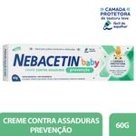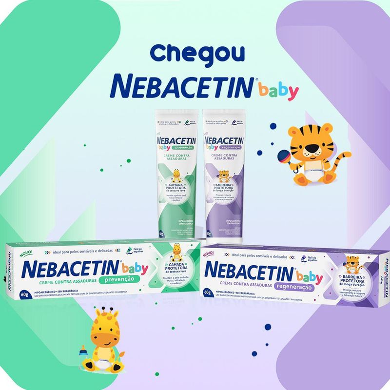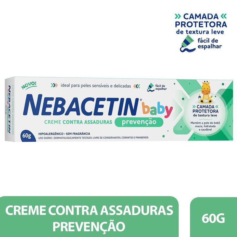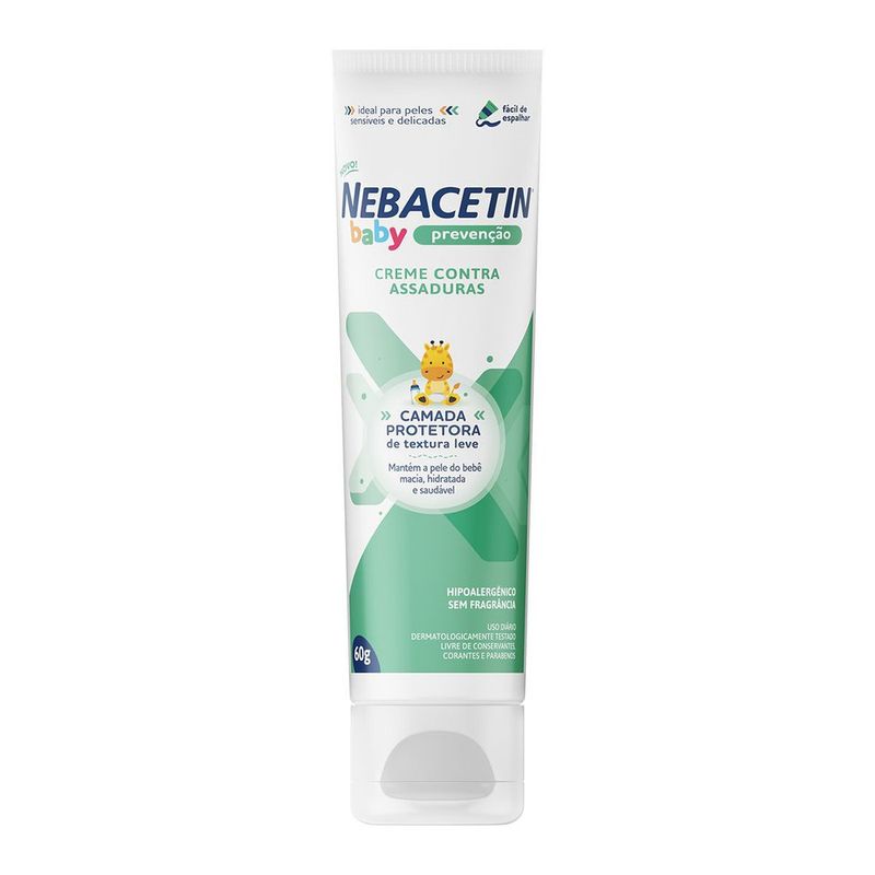 Creme Para Assadura Nebacetin Baby Prevenção 60g O Nebacetin Baby Prevenção é um creme desenvolvido para o uso diário em cada troca de fraldas, com fórmula suave e eficaz que previne assaduras e mantém a pele do bebê protegida, hidratada e saudável. Com Dexpantenol, Óxido de Zinco e Extrato de Calêndula, ele cria uma barreira protetora leve e fácil de espalhar, ideal para peles sensíveis e delicadas. É dermatologicamente testado, hipoalergênico e livre de parabenos, conservantes e corantes, oferecendo confiança e segurança para os cuidados diários com os pequenos. O que é Creme preventivo contra assaduras Uso diário em recém-nascidos e bebês Ideal para peles sensíveis e delicadas Benefícios Previne assaduras com eficácia Textura leve, fácil de aplicar e remover Forma uma camada protetora respirável Hipoalergênico e dermatologicamente testado Feito com ingredientes naturais Sem conservantes, corantes ou parabenos Como usar Limpe cuidadosamente a pele do bebê Aplique o creme a cada troca de fraldas Use sempre com as mãos limpas Produto de uso externo, aplicar por um adulto ou sob sua supervisão Advertências Não usar sobre a pele lesionada Evite o contato com os olhos Em caso de irritação, suspenda o uso Armazene em local fresco, abaixo de 30°C Mantenha a embalagem bem fechada e fora do alcance de crianças