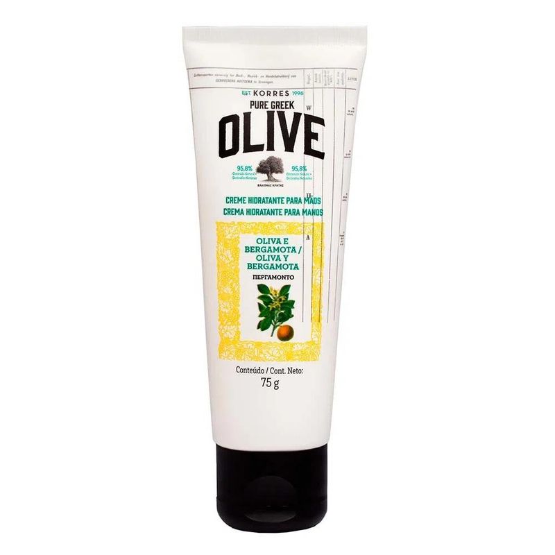 Creme para Mãos Óleo de Oliva e Bergamota Korres 75gCreme para Mãos Óleo de Oliva e Bergamota Korres. Creme hidratante para mãos não oleoso, enriquecido com azeite de oliva puro. Com a deliciosa fragrância cítrica e frutada da bergamota.Fórmula com 95,8% Conteúdo Natural + Derivados NaturaisBenefícios:Azeite de Oliva Puro: Fonte natural de vitaminas e antioxidantes. Nutre a pele evitando a perda de água transepidérmica suavizando, revigorando e restaurando a elasticidade da pele.Como Usar:Aplicar o produto nas mãos limpas e secas. Reaplicar sempre que sentir necessidade. Pode ser usado frequentemente.Resultado:Mãos macias e protegidas contra o ressecamento e rachaduras.Sobre a Marca:**A Korres surgiu em 1996 e hoje está presente em mais de 30 países. Pois sua filosofia simples está baseada no uso de ingredientes orgânicos naturais, extraídos por meio de técnicas próprias da homeopatia, para a criação de produtos de alta tecnologia e com eficácia clinicamente comprovada, mas que não agridem a pele e o meio ambiente.