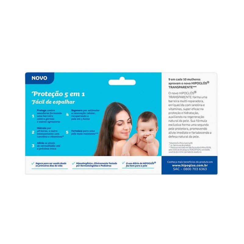 Hipogl?s Transparente 30GO novo HIPOGLOS ® TRANSPARENTE forma uma barreira multi-reparadora, enriquecida com lanolina e vitaminas, eficaz na proteção e hidratação, auxiliando na regeneração natural da pele em 3 horas. Protege por 48 horas. Sua fórmula exclusiva forma uma segunda pele protetora, promovendo alivio imediato e fortalecendo a defesa natural da pele