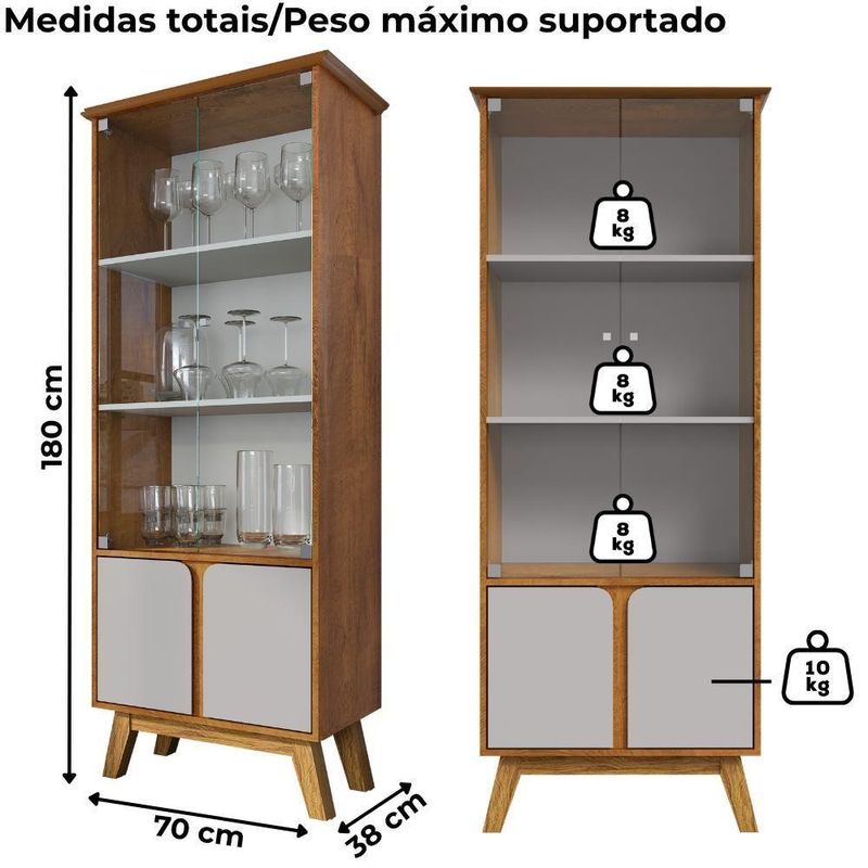 Cristaleira 4 Portas Madri 180x70 Cm Bechara Naturalle Off WhiteCristaleira Madri, definição de design moderno com detalhes retrô. Estruturada em MDP/MDF (15 mm) com acabamento em pintura UV texturizada. Conta com 4 portas (sendo 2 em vidro 4 mm), puxadores em PVC cromado, design curvo e dobradiças metálicas, além de prateleiras internas e pés em madeira maciça (Pinus). Este produto será entregue em 1 volume. Este produto será entregue em 1 volume.DimensõesAltura: 180 cmLargura: 70 cmProfundidade: 38 cmEspecificações Técnicas:Modelo: MadriMateriais: MDP/ MDF e Madeira PinusEstilo: ModernoAmbiente: MultifuncionalPeso máximo suportado: 34kg distribuídos.Sistema de montagemGirofix e parafusosManual de montagem incluso.Recomendação de LimpezaPara a limpeza, utilize um pano seco para retirada do pó.Evite o uso de produtos abrasivos e o contato direto com a umidade.Cristaleira Madri - Toque retrô que une elegância e funcionalidade.Importante SaberAs imagens são meramente ilustrativas, não acompanham objetos de decoração e eletrônicos.A tonalidade da cor do produto pode variar de acordo a calibração de cores do seu monitor, a iluminação do ambiente ou sua percepção visual.O cliente deve verificar a quantidade de VOLUMES descritos na nota, as condições da embalagem, caso haja algum dano NÃO ASSINE o comprovante de recebimento e RECUSE a mercadoria.Montagem, desmontagem e outras instalações serão de responsabilidade do cliente.Não nos responsabilizamos por subir escadas/elevadores ou pelo transporte por guincho em apartamentos. Eventuais despesas são de responsabilidade do comprador.Confira as dimensões do produto e certifique-se de que passarão normalmente por supostos elevadores, portas, escadas ou corredores de sua residência. Recomendamos que o responsável pelo recebimento confira se os produtos entregues correspondem ao modelo e à quantidade adquirida.Garantia De Fábrica90 dias para eventuais defeitos de fabricação.Cor: Multicolorido | Tonalidade: Multicolorido | Produto: Cristaleira | Comôdo indicado: Multiuso Cor: Naturalle Off White