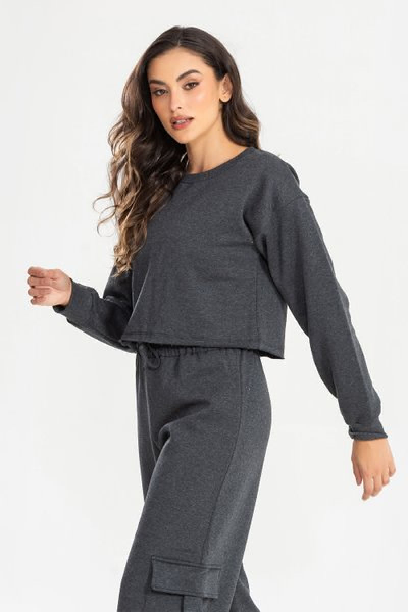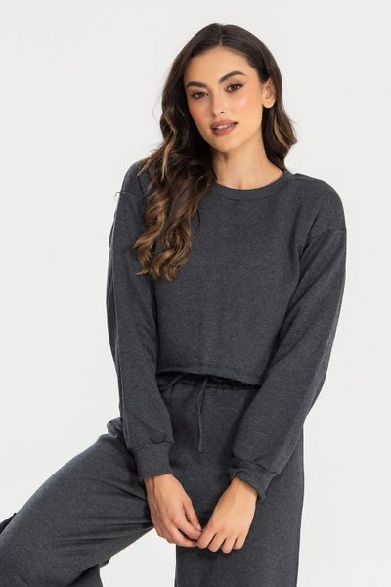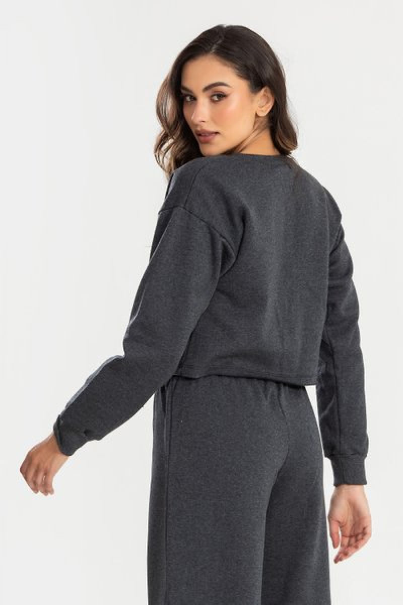 Cropped Moletom Manga Longa Evy Mescla Escuro - G - Características Gerais do Produto: • Cor: Mescla Escuro • Composição: 75% algodão / 25% Poliéster • Modelo Veste: Tamanho P • Bolsos: Sem Bolsos • Indicação de Tamanho: Utilize a tabela de medidas. • Cuidados: Secar a sombra. Não usar alvejante. • Garantia: Contra defeito de fabricação. • Modelagem: Cropped Garantia: • Contra defeito de fabricação.