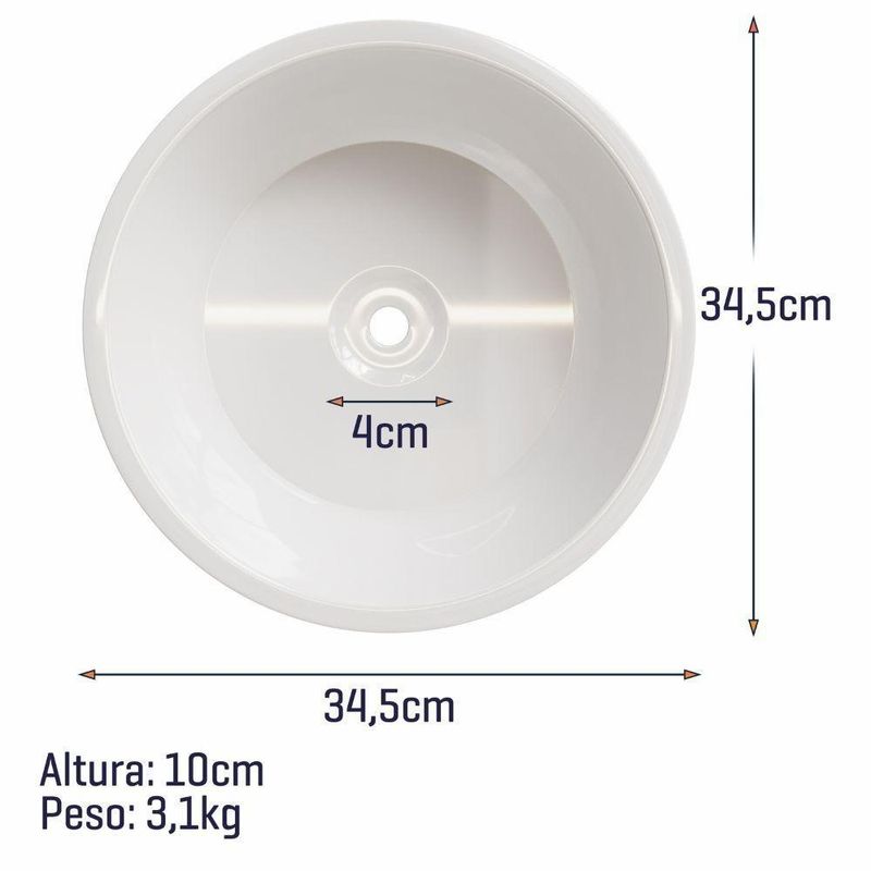 Cuba De Apoio Para Banheiro E Lavabo Turquesa Redonda Luxo Design ModernoCuba de Apoio para Banheiro e Lavabo Turquesa Redondo Luxo Design ModernoTransforme Seu Banheiro com EstiloA Cuba de Apoio para Banheiro e Lavabo Turquesa Redonda é a escolha perfeita para quem busca aliar funcionalidade e estética em um único produto. Com um design moderno e minimalista, essa cuba não só embeleza o ambiente, mas também proporciona praticidade no dia a dia. Ideal para banheiros e lavabos pequenos, ela se destaca pela sua cor branca brilhante, que traz luminosidade e elegância ao espaço.Dimensões Perfeitas para Seu EspaçoA Cuba de Apoio possui dimensões que se adaptam a diferentes ambientes:Altura: 10 cmLargura: 34,50 cmProfundidade: 34,50 cmCom um peso de apenas 3,150 kg, a instalação é facilitada, permitindo que você a posicione com facilidade em qualquer bancada ou móvel planejado.Atributos do ProdutoMarca: Movelove - Reconhecida pela qualidade e inovação em produtos para o lar.Modelo: Turquesa Sobrepor - Este modelo é projetado para oferecer durabilidade e resistência, ideal para o uso diário.Furo para torneira/válvula: 4cm, garantindo compatibilidade com diversos acessórios.Cor: Branca, que se integra facilmente a qualquer decoração.Material: Sintético, resistente e leve, proporcionando facilidade na instalação e manutenção.Design: Moderno e minimalista, perfeito para ambientes contemporâneos.Uso Ideal: Banheiros, lavabos e lavatórios pequenos, otimizando o espaço disponível.Instalação: Fácil de instalar e limpar, tornando a rotina mais prática.Por que Escolher a Cuba de Sobrepor Movelove?Escolher a Cuba de Sobrepor Apoio Turquesa Redonda da Movelove é optar por um produto que combina qualidade, estilo e funcionalidade. Seu design inovador e a praticidade na instalação fazem dela uma escolha inteligente para quem deseja modernizar o banheiro ou lavabo.Não perca a oportunidade de transformar seu espaço com esta peça única. Cuba de Apoio Turquesa Redonda e leve sofisticação e praticidade para o seu lar! Material: Sintético