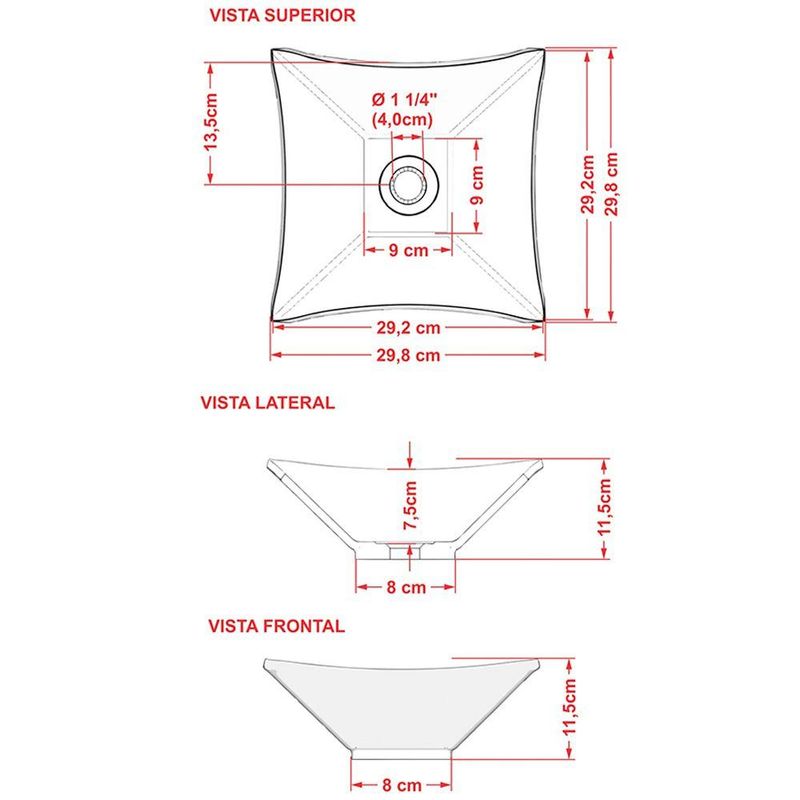 Descrição do produto: Seu banheiro de cara nova! Hoje, incrivelmente um dos locais da casa onde mais pedem decoração é o banheiro ou lavabo. Aqui apresentamos a você uma cuba elegante e de um escoamento de água excelente para proporcionar mais comodidade e versatilidade para os usuários do lavatório. Além de enriquecer o visual do seu banheiro, determina a funcionalidade do mesmo. Vale ressaltar que as torneiras mais indicadas para este tipo de cuba são as de parede ou de bica alta, e exige também uma bancada com espaço superior suficiente para abrigar a mesma, junto com os outros adornos de banheiro que você desejar. Ideal para fazer parte do seu sonho! Dimensões da Cuba (L x A x P) 29,8 x 11,5 x 29,8 cm Características: Estrutura em Mármore Sintético com acabamento em Gel Coat, semelhante a louça e responsável por criar mais resistência a peça. Furação da Cuba: Válvula 1 1/4" (40mm) Acabamento Polido. Formato: Folha. Modelo: Apoio. Importante: O produto é enviado montado, requerendo apenas instalação por parte do cliente. Recomendação de Limpeza: Recomenda-se lavagem do produto com bucha apenas do lado amarelo e detergente neutro. Observações importantes: - Produto para uso residencial em ambiente interno, não devendo ficar exposto diretamente ao sol, calor e umidade excessivos. - Pode haver alguma diferença de tonalidade entre a imagem e o produto real, por conta do tratamento de imagens e a calibração de cores do seu monitor. - As imagens são meramente ilustrativas, não acompanham objetos de decoração e eletrônicos. - Ao receber a mercadoria, o cliente deve verificar as condições da embalagem, caso haja alguma avaria não assine o comprovante de recebimento. - Montagem, desmontagem e outras instalações serão de responsabilidade do cliente. Não nos responsabilizamos, no ato da entrega, por subir escadas/elevadores ou pelo transporte por guincho em apartamentos. Eventuais despesas são de responsabilidade do comprador. - Confira as dimensões do produto e certifique-se de que passará normalmente por supostos elevadores, portas, escadas e/ou corredores de sua residência.