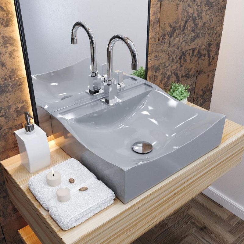 Cuba de Apoio Quadrada Para Banheiro Lavabo C01 Q440 Cinza - Lyam Decor