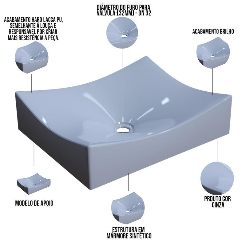 Cuba de Apoio Retangular Para Banheiro Lavabo C01 ML44W Cinza - Lyam Decor