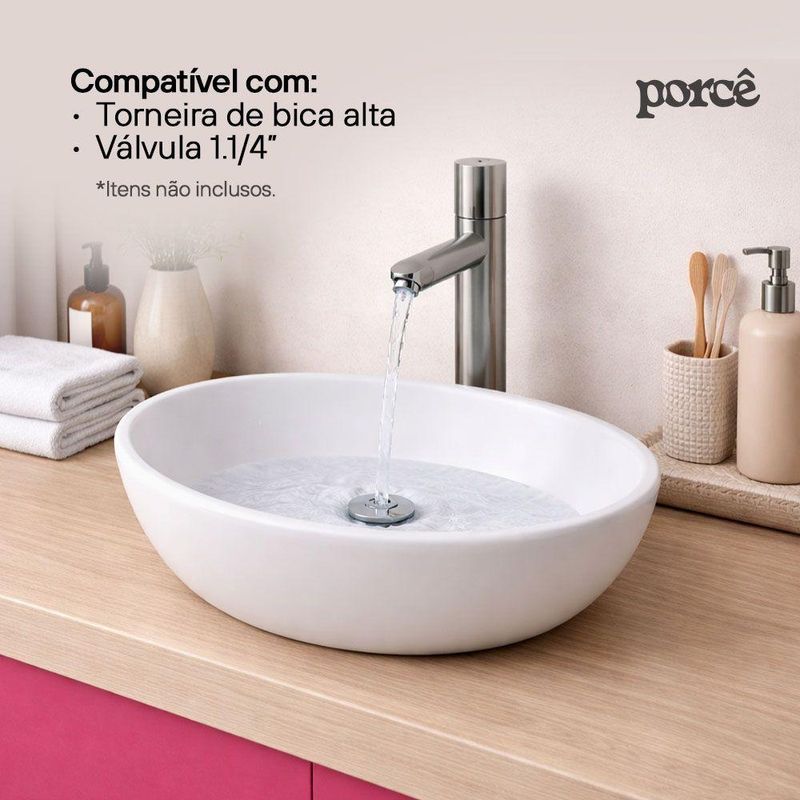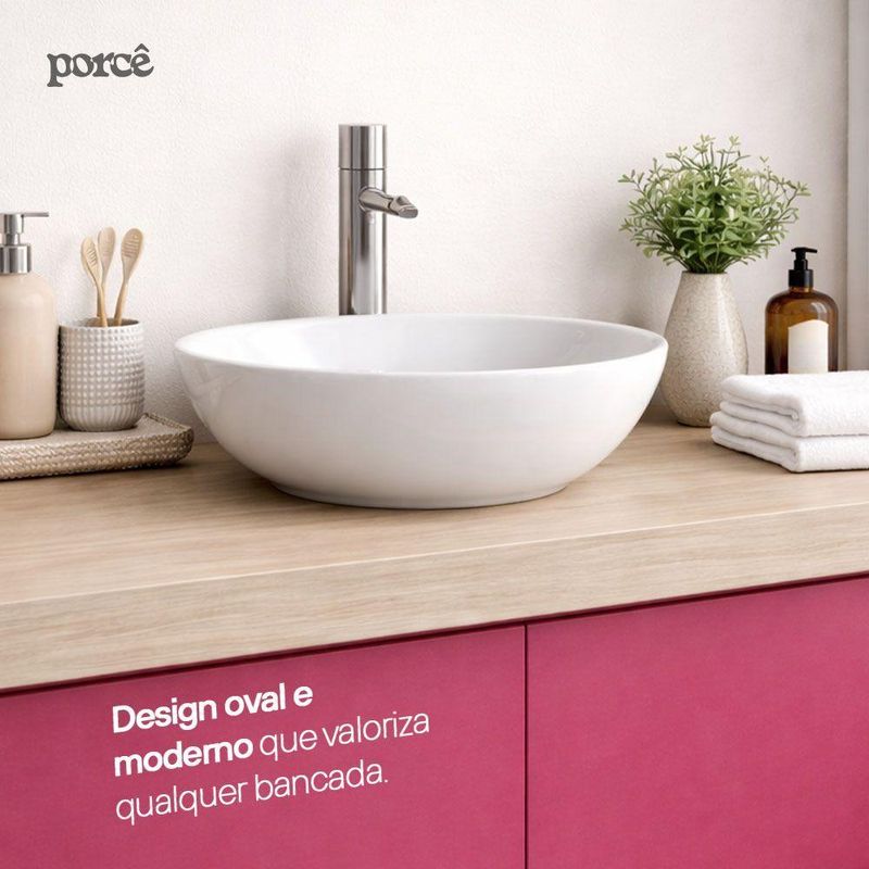 CUBA DE SOBREPOR PORCÊ SERENA (PCC4025A-BR)A Cuba de Sobrepor Porcê Serena foi desenvolvida para quem busca unir sofisticação, durabilidade e um design moderno no banheiro ou lavabo. Com formato oval e acabamento esmaltado brilhante, ela entrega um visual elegante que se destaca em bancadas de diversos estilos, desde ambientes clássicos até projetos mais contemporâneos.Produzida em cerâmica de alta qualidade, a Cuba Serena oferece resistência, fácil higienização e longa vida útil. Seu formato ergonômico e proporções equilibradas garantem conforto no uso diário, além de otimizar o espaço da bancada. Por ser uma cuba de apoio, a instalação é simples e prática, valorizando o ambiente e proporcionando um toque premium ao décor.Com 40,5 cm de comprimento e apenas 14,5 cm de altura, ela se adapta perfeitamente a banheiros residenciais e comerciais. A superfície esmaltada facilita a limpeza e evita manchas, permitindo que a cuba permaneça com aparência de nova por muito mais tempo.A Cuba Serena é uma escolha ideal para quem deseja renovar o banheiro com estilo, eficiência e um acabamento impecável.Características• Ideal para o seu banheiro: possui design oval moderno e elegante.• Resistente e de alta qualidade: material em cerâmica com acabamento esmaltado de alta durabilidade.• Instalação de apoio: prática e compatível com diversos estilos de banheiro.• Fácil limpeza: superfície lisa que evita acúmulo de resíduos.• Prática para o dia a dia: ideal para ambientes residenciais e comerciais.Dúvidas Frequentes1. Qual tipo de válvula é indicado?A recomendação é utilizar uma válvula de 1 1/4 polegadas.2. A limpeza é fácil?Sim. Basta utilizar pano macio, água e sabão neutro, Itens abrasivos não são recomendados.3. Pode ser instalada em banheiro comercial?Sim. O modelo é indicado tanto para uso residencial quanto comercial.4. A cuba acompanha torneira?Não. A cuba não acompanha torneira.5. A cuba vem com kit de instalação ou válvula?Não. A válvula e demais itens devem ser adquiridos separadamente.Especificações TécnicasMarca: PorcêModelo: SerenaCódigo: PCC4025A-BRMaterial: CerâmicaAcabamento: EsmaltadoCor: BrancoForma: OvalVálvula indicada: 1 1/4 polegadasInclui torneira: NãoInclui válvula: NãoIndicação de Uso: Comercial; ResidencialAplicação: SobreporInstruções de Limpeza: Pano macio, água e sabão neutro.Peso Bruto: 12 kgPeso Líquido: 11 kgDimensões do Produto (C × A × L): 40,5 × 14,5 × 33 cmDimensões da Embalagem (C × A × L): 42,5 × 16,5 × 35 cmItens Inclusos: 1 Cuba de PorcelanaGarantia: 12 meses contra defeito de fabricação