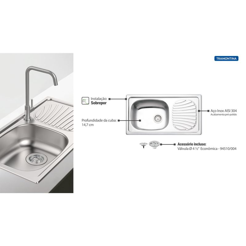 A Cuba de Sobrepor Tramontina Alpha 40 R em Aço Inox com Acabamento Pré Polido, 78 x 43 cm com Escorredor e Válvula, da linha Perfecta, é uma excelente opção para os mais variados projetos. Acompanha escorredor na lateral para maior praticidade e conforto, principalmente para ambientes menores.