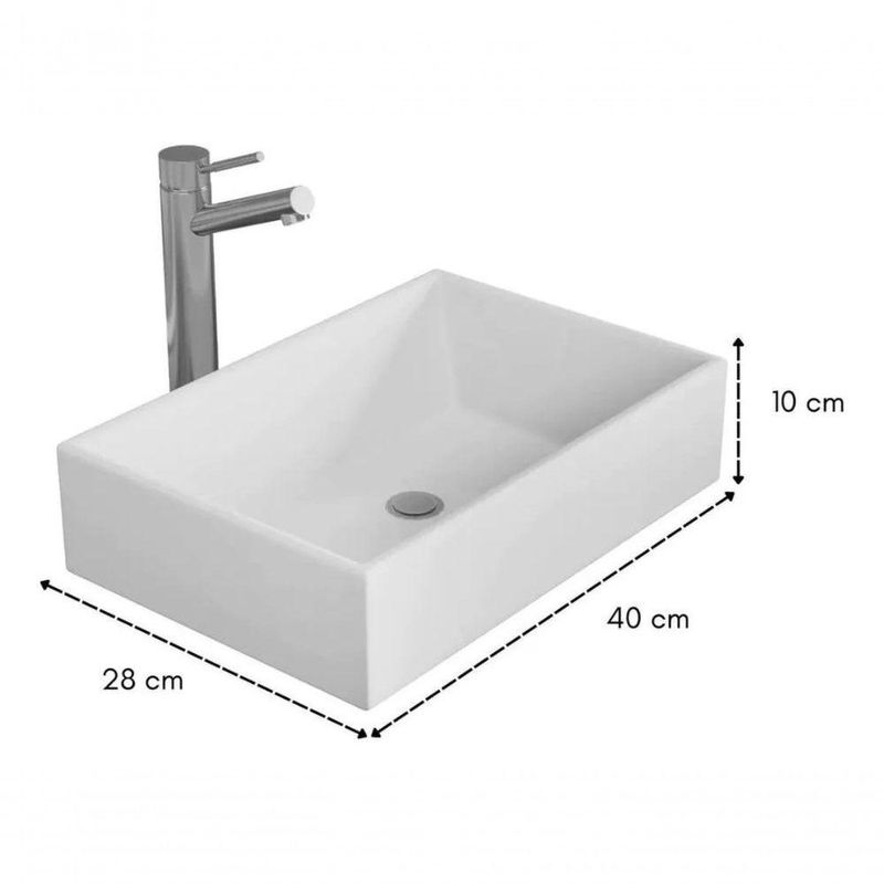 Cuba Pia Retangular Para Banheiro Sanitário Lavabo SobreporCuba Sobrepor DecorMobilyNÃO ACOMPANHA TORNEIRA !!Renove seu banheiro com esta Cuba para Pia, uma peça que une design moderno e funcionalidade. Ideal para adicionar um toque de sofisticação ao seu ambiente, esta cuba de pia é perfeita para quem busca qualidade e estilo.OBS: Nossa loja não oferece serviço de montagem. Todos nossos móveis possuem manual de montagem com passo a passo para montagem junto a um profissional de confiança.Características Principais:Design Moderno: A Cuba possui um design contemporâneo com linhas elegantes, que se adapta facilmente a qualquer estilo de decoração de banheiro.Materiais de Alta Qualidade: Fabricada resina de alta durabilidade, garantindo resistência e um acabamento impecável.Fácil de Limpar: A superfície lisa e brilhante facilita a limpeza e manutenção, mantendo sua cuba sempre impecável.Dimensões Ideais: Medindo 10 cm de altura, 28 cm de comprimento e 40 cm de largura, é perfeita para otimizar o espaço sem comprometer a funcionalidade.Instalação Simples: Acompanha manual de instruções detalhado para uma instalação rápida e sem complicações.NÃO ACOMPANHA TORNEIRA !!Especificações:Material: Resina de alta qualidadeAcabamento: Superfície lisa e brilhanteDimensões: 10 cm (altura) x 28 cm (comprimento) x 40 cm (largura)Peso: 5kgIncluso na Embalagem:1 Cuba de PiaManual de InstruçõesKit de InstalaçãoGarantia do vendedor: 30 dias