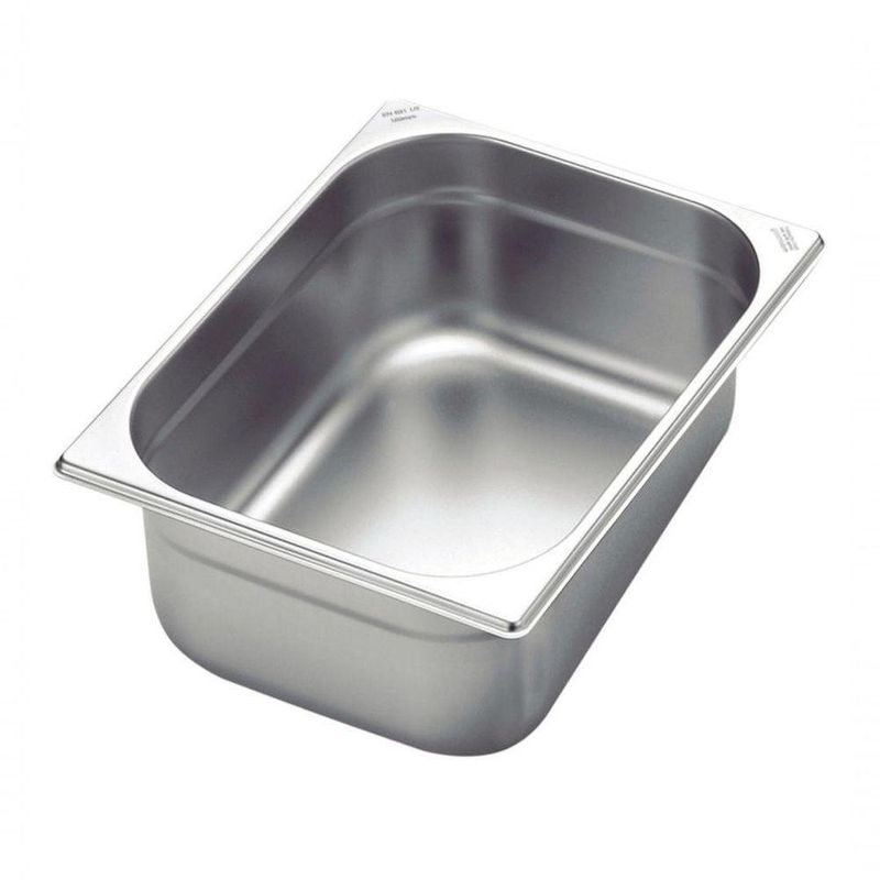 Cuba Tramontina Gn 1/2 Em Aço Inox Sem Alças Profundidade 180 MmJá imaginou aquele delicioso strogonoff, massa ou lasanha super apetitosos que seus clientes adoram? Para impressioná-los você pode utilizar a Cuba Tramontina 1/2 em Aço Inox sem Alças Profundidade 180 mm. Além de super prática de limpar, devido aos seus cantos arredondados, essa cuba permite que você realize facilmente a tarefa de empilhamento pois contém paredes laterais com rebaixamento interno.Recomendações de Uso:Antes do uso: Antes de utilizar o , remova as eventuais etiquetas e lave-o com água quente e de uso: Alguns alimentos que possuem amido, por exemplo massa e arroz, poderão deixar manchas na parte interna do utensílio. Essas manchas são facilmente removidas, passando um pano com suco de limão, vinagre ou a Pasta de Polir Inox Tramontina. Para que o produto de aço inox Tramontina fique sempre bonito e com brilho, recomendamos que seja lavado somente com detergente e esponja. Depois da lavagem, sempre que possível, enxágue o produto com água quente e seque-o imediatamente, para que se mantenha com o brilho . O cloro e as substâncias contidas na água podem deixar manchas.- Foto meramente ilustrativa- Embalagem litografadaInformações Adicionais:- Sem alças;- Material: Aço 304;- Capacidade: 11,27l;- Profundidade: 180mm;- Cuba com paredes laterais com rebaixamento interno para facilitar o empilhamento;- Cantos internos arredondados e mais amplos para ajudar na limpeza e no recolhimento dos alimentos;- A linha de cubas gastronômicas Tramontina está de acordo com todos os módulos dimensionais descritos na norma europeia EN 631.