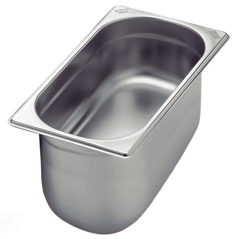 Cuba Tramontina Gn 1/3 Em Aço Inox Sem Alças Profundidade 200 Mm - Aço 201 TramontinaCuba Tramontina GN 1/3 em Aço Inox sem Alças Profundidade 200 mm - Aço 201 Tramontina -Para servir com qualidade alimentos preparados com muito carinho você pode contar com a Cuba Tramontina 1/3 em Aço Inox sem Alças Profundidade 200 mm. Essa cuba além de sua fabricação em aço inox, material de alta qualidade e durabilidade, ela é muito fácil na hora de higienizar, seus cantos arredondados permitem que você passe a esponja sem dificuldades realizando a limpeza do produto de modo mais ágil e eficaz.OrientaçõesTotalmente feita de aço inox, por isso não solta nenhum resíduo nos alimentos, mantendo-os saudáveis.Altamente durável mantém suas características , preservando a beleza, a higiene e a durabilidade do material.Cuba com paredes laterais com rebaixamento interno para facilitar o empilhamento.Cantos internos arredondados e mais amplos para ajudar na limpeza e no recolhimento dos alimentos.A linha de cubas gastronômicas Tramontina está de acordo com todos os módulos dimensionais descritos na norma europeia EN 631.Material: aço inox.Capacidade: 7,34l.Profundidade: 200mm.Aço 201Sem alças.Características GeraisEAN137891116161333DUN1417891116161330NCM7323.93.00Peso Líquido0,9000 kg.Peso Bruto0,9000 kg.Metragem0,011340 m³.Dimensões Embalagem (Compr. X Larg. X Alt.)324x 175x 200 mm.Dimensões Produto (Compr. X Larg. X Alt.)325x 176x 200 mm.Capacidade7,34 l.Espessura0,8 mm.ObservaçõesUse apenas sabão ou detergente e uma esponja macia. Outros tipos de produto como palha de aço, poderão riscar ou prejudicar o brilho da peça.Enxágue cada item a fim de remover totalmente os resíduos dos produtos de limpeza, que, por serem abrasivos, podem danificar o inox.Sempre que possível, use água quente, pois renova o brilho da peça.Após a lavagem, enxugue imediatamente a peça, caso contrário, as substâncias químicas da água (cloro) poderão causar manchas.Evite atrito entre as peças durante o processo de lavagem e no armazenamento, para mantê-la sem riscos.Evite o contato do produto com superfícies quentes, pois elas provocam a descoloração do material.Não guarde a peça em locais úmidos. A umidade também provoca manchas.Características Gerais do Produto:Garantia: - 1 Ano