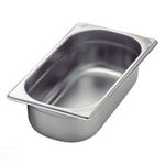 Cuba Tramontina Gn 1/3 Em Aço Inox Sem Alças Profundidade 65 Mm - Aço 304 TramontinaCuba Tramontina GN 1/3 em Aço Inox sem Alças Profundidade 65 mm - Aço 304 Tramontina -A Cuba Tramontina 1/3 em Aço Inox sem Alças Profundidade 65 mm é a escolha perfeita para quem deseja montar um elegante buffet em seu restaurante. Além de sua fabricação ser totalmente em material aço inox, essa cube é muito simples de guardar, você pode empilhá-la facilmente devido as suas paredes laterais rebaixadas internamente, que facilitam esse processo.OrientaçõesTotalmente feita de aço inox, por isso não solta nenhum resíduo nos alimentos, mantendo-os saudáveis.Altamente durável mantém suas características , preservando a beleza, a higiene e a durabilidade do material.Cuba com paredes laterais com rebaixamento interno para facilitar o empilhamento.Cantos internos arredondados e mais amplos para ajudar na limpeza e no recolhimento dos alimentos.A linha de cubas gastronômicas Tramontina está de acordo com todos os módulos dimensionais descritos na norma europeia EN 631.Material: aço inox.Capacidade: 2,30l.Profundidade: 65mm.Aço 304Sem alças.Características GeraisEAN137891116018972DUN1417891116018979NCM7323.93.00Peso Líquido0,3300 kg.Peso Bruto0,3300 kg.Metragem0,003718 m³.Dimensões Embalagem (Compr. X Larg. X Alt.)325x 176x 65 mm.Dimensões Produto (Compr. X Larg. X Alt.)325x 176x 65 mm.Capacidade2,30 l.Espessura0,5 mm.ObservaçõesUse apenas sabão ou detergente e uma esponja macia. Outros tipos de produto como palha de aço, poderão riscar ou prejudicar o brilho da peça.Enxágue cada item a fim de remover totalmente os resíduos dos produtos de limpeza, que, por serem abrasivos, podem danificar o inox.Sempre que possível, use água quente, pois renova o brilho da peça.Após a lavagem, enxugue imediatamente a peça, caso contrário, as substâncias químicas da água (cloro) poderão causar manchas.Evite atrito entre as peças durante o processo de lavagem e no armazenamento, para mantê-la sem riscos.Evite o contato do produto com superfícies quentes, pois elas provocam a descoloração do material.Não guarde a peça em locais úmidos. A umidade também provoca manchas.Características Gerais do Produto:Garantia: - 1 Ano