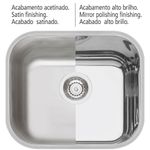 Cuba Tramontina Lavínia 40 Bl Prime Em Aço Inox Acetinado 40x34 Cm Com Válvula 94020102CUBA TRAMONTINA LAVÍNIA EM AÇO INOX ACETINADO 40X34 CM 94020102Marca: TramontinaModelo: Lavínia 40 BL em Aço Inox Acetinado 94020102Linha: PrimeDESCRIÇÃO- O dia a dia fica muito mais prático e elegante com os assessórios certos.- A Cuba Lavínia 40 BL Tramontina Prime em Aço Inox Acetinado 40x34 cm é um destes casos.- Tenha na sua casa produtos de qualidade e com design moderno que só a Tramontina oferece!CARACTERÍSTICAS- Cuba em aço Inox AISI 304;- Espessura: 0,6 mm;- Fabricado no sistema monobloco (sem solda);- Capacidade: 20,5 L;- Acabamento Scotch Brite na borda de sobrepor;- Acompanha válvula de Ø 4 1/2;- Sem escape.BENEFÍCIOS DO PRODUTO- Válvula descentralizada - permite melhor aproveitamento da cuba e da parte inferior do gabinete;- Acompanha válvula de alta qualidade, fácil montagem e excelente vedação;- Inclinação da cuba em direção à válvula - impede o acúmulo de água;- A cuba de aço inox é mais higiênica, mais durável e de excelente apresentação;- Opcionalmente, são oferecidos acessórios, como pranchas, cestos aramados, dosador de sabão, etc., que auxiliam na preparação e higiene dos alimentos;ORIENTAÇÕES GERAIS- Para um perfeito funcionamento da cuba, montar inicialmente a válvula;- Remover a etiqueta colada na pia;- Limpar a cuba com detergentes normais neutros;- Usar somente esponja macia ou pano para lavar a pia;- Esta peça contém bordas cortantes. Manusear com cuidado;- Não usar ácido muriático, água sanitária ou qualquer outro solvente para lavar objetos na pia;- Na reforma ou construção, proteger a cuba para não deixar sobre a mesma pó de cimento ou gesso;- Enxaguar e secar bem a peça após o uso;- Nunca deixar objetos metálicos sobre a peça por períodos muito longos, para evitar a corrosão;- Para manter o brilho da sua cuba, recomendamos o uso da pasta para polir e remover manchas em superfícies de aço inoxidável Tramontina.GARANTIA- Garantia de 12 meses pelo fabricante contra defeitos de fabricação.DIMENSÕES DO PRODUTO- Dimensões Produto (Compr. X Larg. X Alt.): 40 x 34 x 17 cm. Marca: Tramontina | Modelo: Lavínia | Cubagem: 0.032604 | Altura Produto: 17 | Comprimento Produto: 40 | ProdutoComprimento-cm: 40 | Peso Líquido: 1.6000 | Dias Entrega Fornecedor: 0 | ProdutoLargura-cm: 34 | EmbalagemLargura-cm: 39 | Largura Produto: 34 | Tipo de pia: Cuba Lavínia 40 BL | EmbalagemAltura-cm: 19 | EmbalagemComprimento-cm: 44 | ProdutoAltura-cm: 17