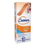Curativo Cremer Care Bege 10 Unidades O que é o Curativo Cremer Care Bege? O Curativo Cremer Care Bege é um curativo adesivo de alta qualidade, projetado para proteger pequenos ferimentos e cortes do dia a dia. Com seu design discreto na cor bege, ele se adapta perfeitamente ao tom de pele, proporcionando uma proteção eficaz e quase imperceptível. Cada embalagem contém 10 unidades, ideais para ter sempre à mão em casa, no trabalho ou em viagens. Para que serve o Curativo Cremer Care Bege? Proteção de Ferimentos: Protege cortes, arranhões e pequenas lesões, evitando a entrada de sujeira e microrganismos. Cicatrização Acelerada: Ajuda a manter o ambiente do ferimento protegido e limpo, promovendo uma cicatrização mais rápida e eficaz. Uso Diário: Ideal para cuidados básicos com a pele, sendo uma solução prática para o tratamento de pequenos machucados. Como o Curativo Cremer Care Bege funciona? O curativo Cremer Care Bege possui uma camada adesiva hipoalergênica que fixa com segurança na pele sem causar irritações. A almofada central absorvente é feita para proteger a lesão, evitando fricções e contaminações, enquanto permite que a pele respire, acelerando o processo de cicatrização. Benefícios do Curativo Cremer Care Bege Discreto: Cor bege que se adapta ao tom de pele, tornando o curativo menos visível. Hipoalergênico: Formulado para minimizar o risco de reações alérgicas. Confortável: Almofada macia que protege a pele sem causar desconforto. Fácil de Usar: Adesivo de fácil aplicação e remoção, sem deixar resíduos. Como usar o Curativo Cremer Care Bege? Instruções de Uso: Limpe e seque a área afetada antes de aplicar o curativo. Retire a película protetora do adesivo e aplique sobre a lesão, pressionando levemente as bordas para garantir uma boa fixação. Frequência de Troca: Troque o curativo sempre que necessário, especialmente se ele ficar úmido ou sujo. Contraindicações e Precauções Contraindicações: Não utilize em feridas profundas, infectadas ou exsudativas sem orientação médica. Precauções: Mantenha fora do alcance de crianças. Em caso de reação alérgica, suspenda o uso e consulte um médico. Armazenamento Armazene em local seco e fresco, protegido da luz solar direta e da umidade. Mantenha o produto na embalagem original até o momento do uso.