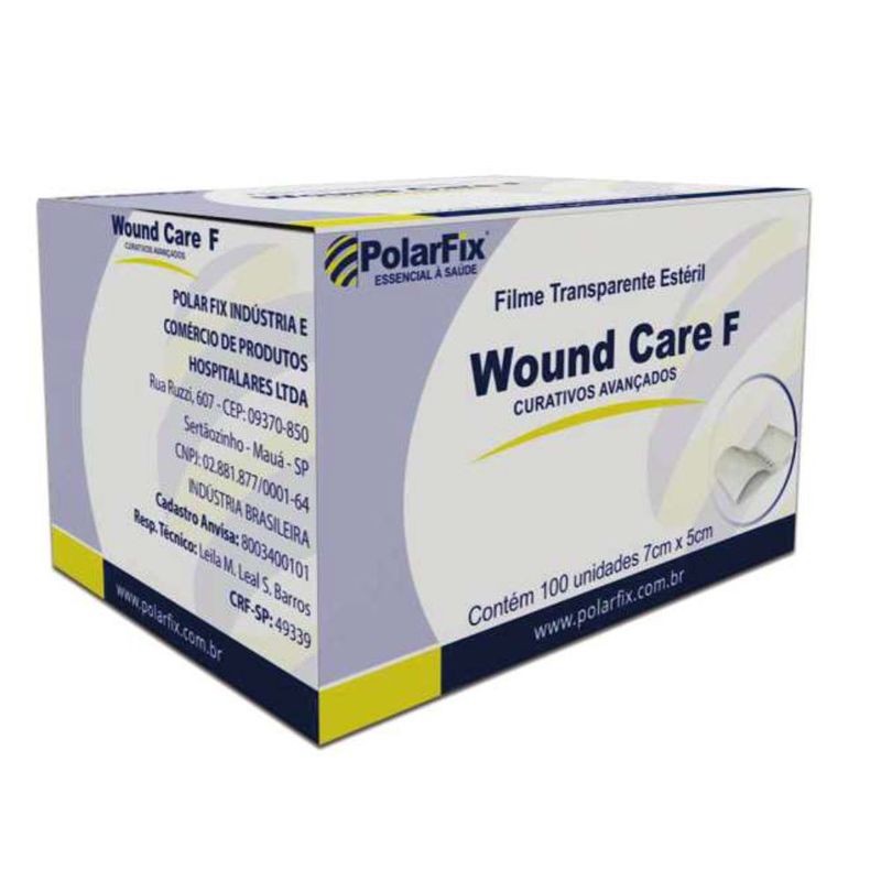 Indicações de uso: O Filme Transparente Estéril Wound Care F é um filme que se adapta a qualquer contorno corporal e protege o tecido epitelial de fatores externos, como micro-organismos e líquidos. O Filme Transparente Estéril Wound Care F é indicado:Feridas superficiais;Proteção de tecido epitelial novo;Curativo secundário para fixação de outros curativos.Benefícios oferecidos aos pacientes:Redução do risco de infecção: a alta permeabilidade aos vapores de água previne o acúmulo de umidade entre a pele e o filme, evitando a proliferação bacteriana e, consequentemente, o risco de infecção. Sua impermeabilidade a bactérias permite que o mesmo atue como uma barreira mecânica;Minimiza frequência de troca do filme: A alta permeabilidade do filme aos gases e vapores úmidos mantém a pele seca e aumenta a aderência do filme com a pele, o que reduz a frequência de troca;Maior conforto do paciente: Composto por um adesivo hipoalergênico e sendo altamente permeável a gases e vapores úmidos, evita maceração e irritações da pele, aumentando o conforto do usuário;Visualização da ferida: Sua transparência permite a visualização da evolução da ferida (quando não aplicado sobre uma cobertura primária).