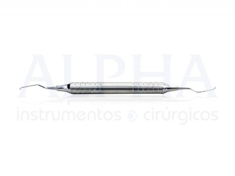 Cureta Gracey 7-8 Mini Five. Instrumento cirúrgico não articulado cortante. Produzida em aço inoxidável. Utilizada para raspagem de tártaro, indicada para superfície bucal/lingual, as curetas mini-five possuem o comprimento das lâminas 50% menor e a espessura da lâmina 10% menor.